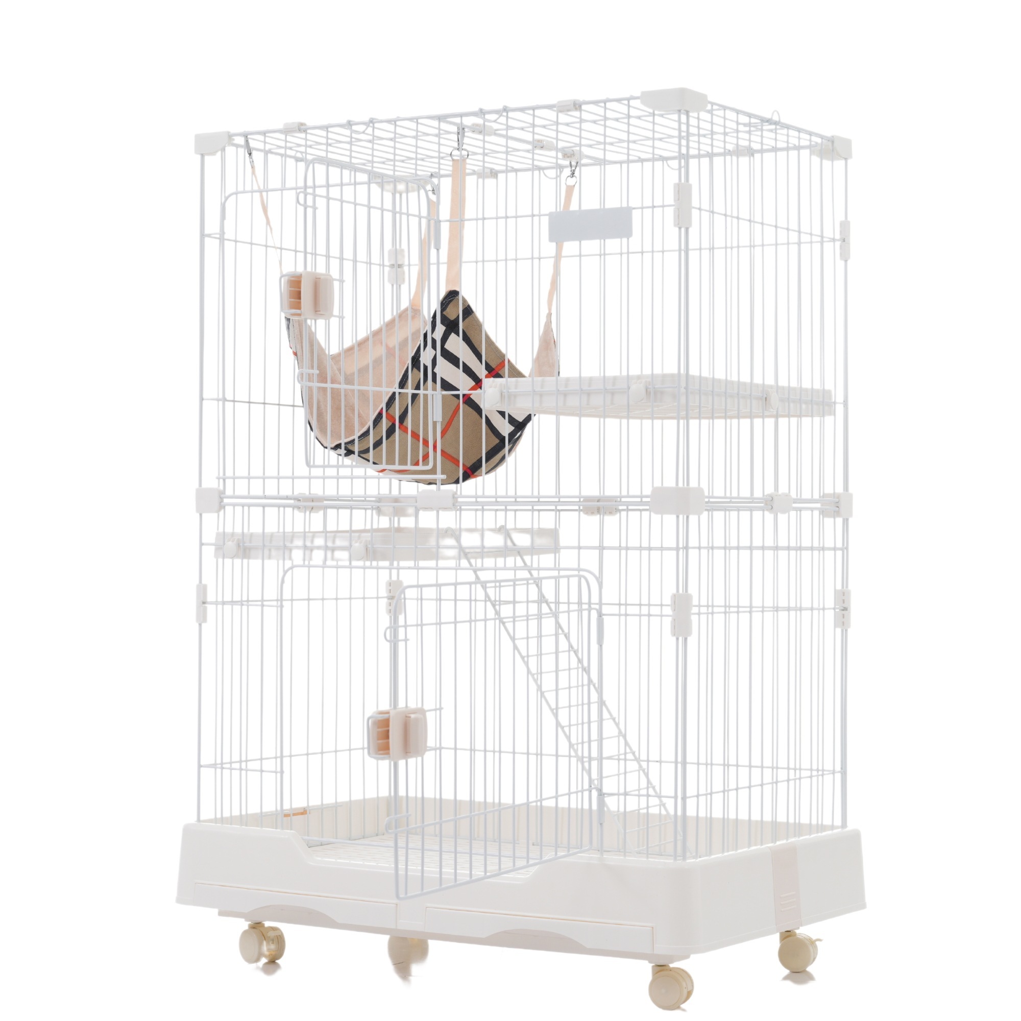 83猫 ケージ キャットケージ ペットケージ キャスター付 猫ゲージ 大型 多頭飼い ネコドア キャットハウス 1段2段可能 留守番 保護 脱走防止 おしゃれ (2段,ホワイト)
