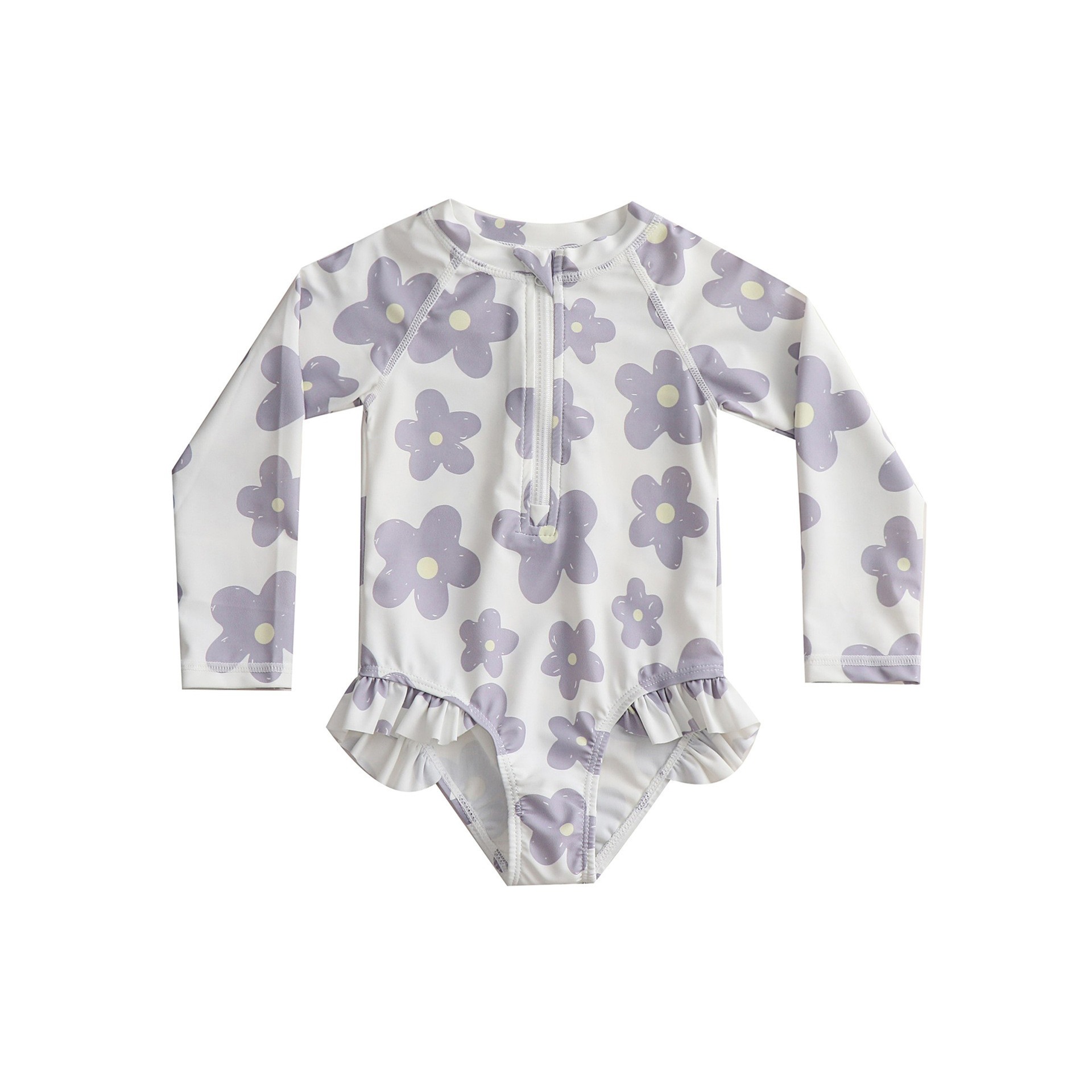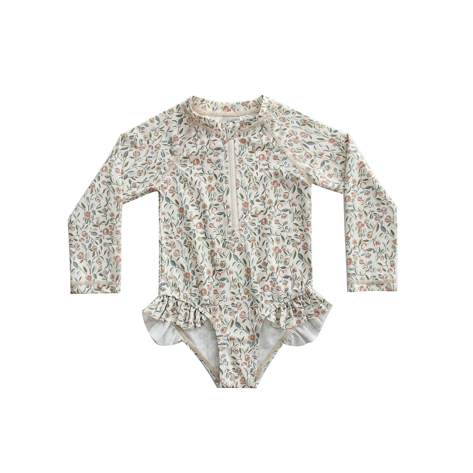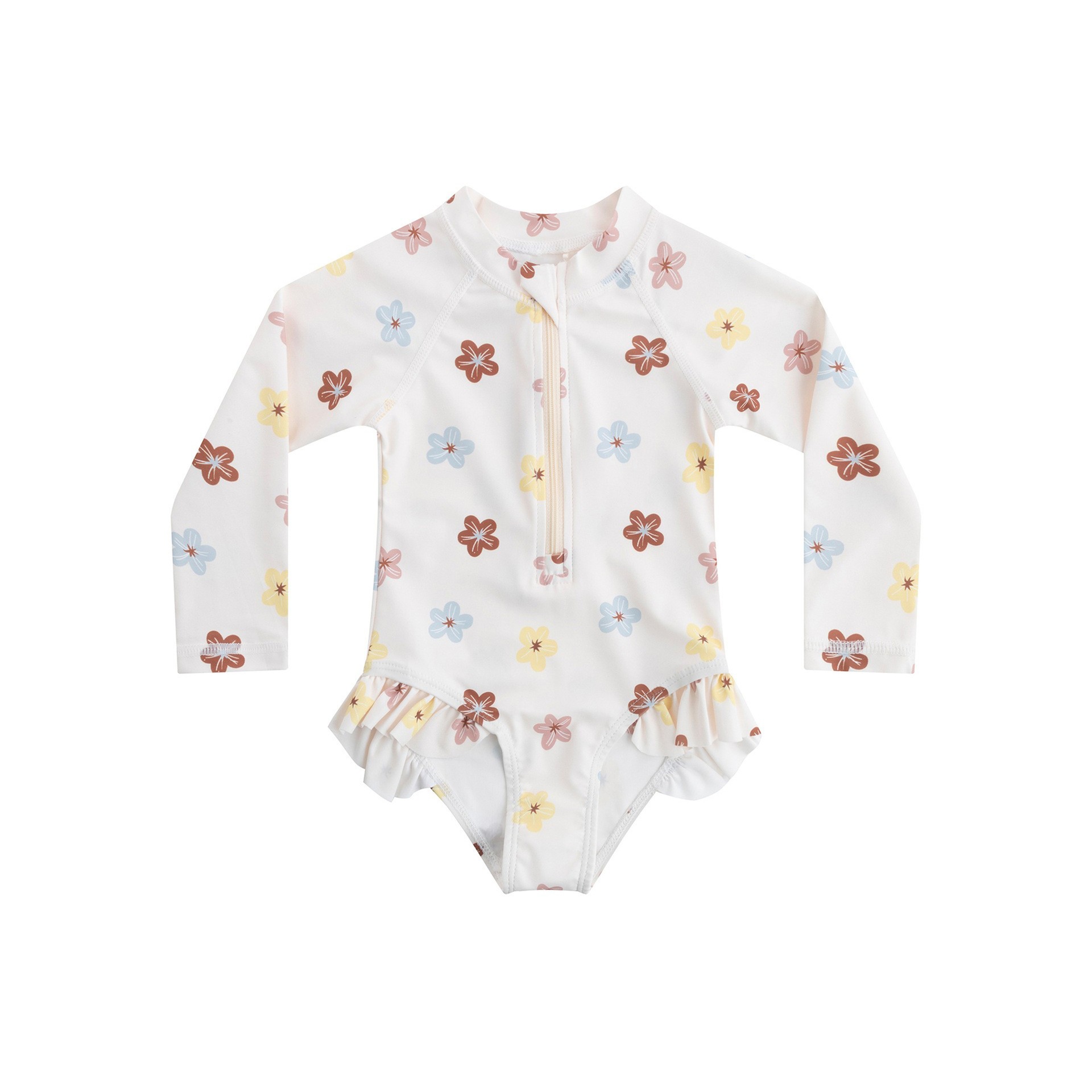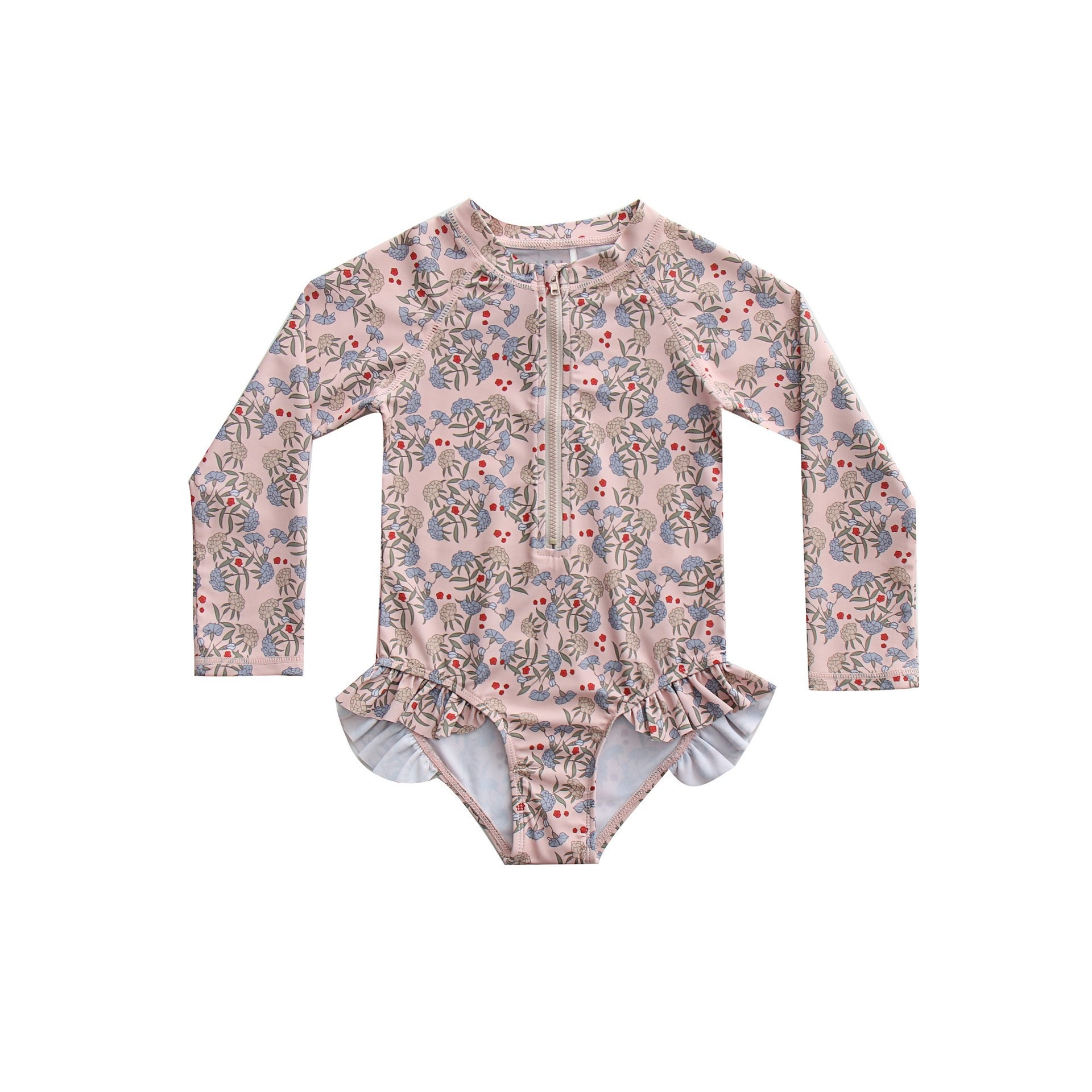 女児 つなぎ水着 長袖 UVカット 耐塩素 小花柄 インスタ風 可愛い ベビー 子供 スイムウェア プール 海 ラッシュガード