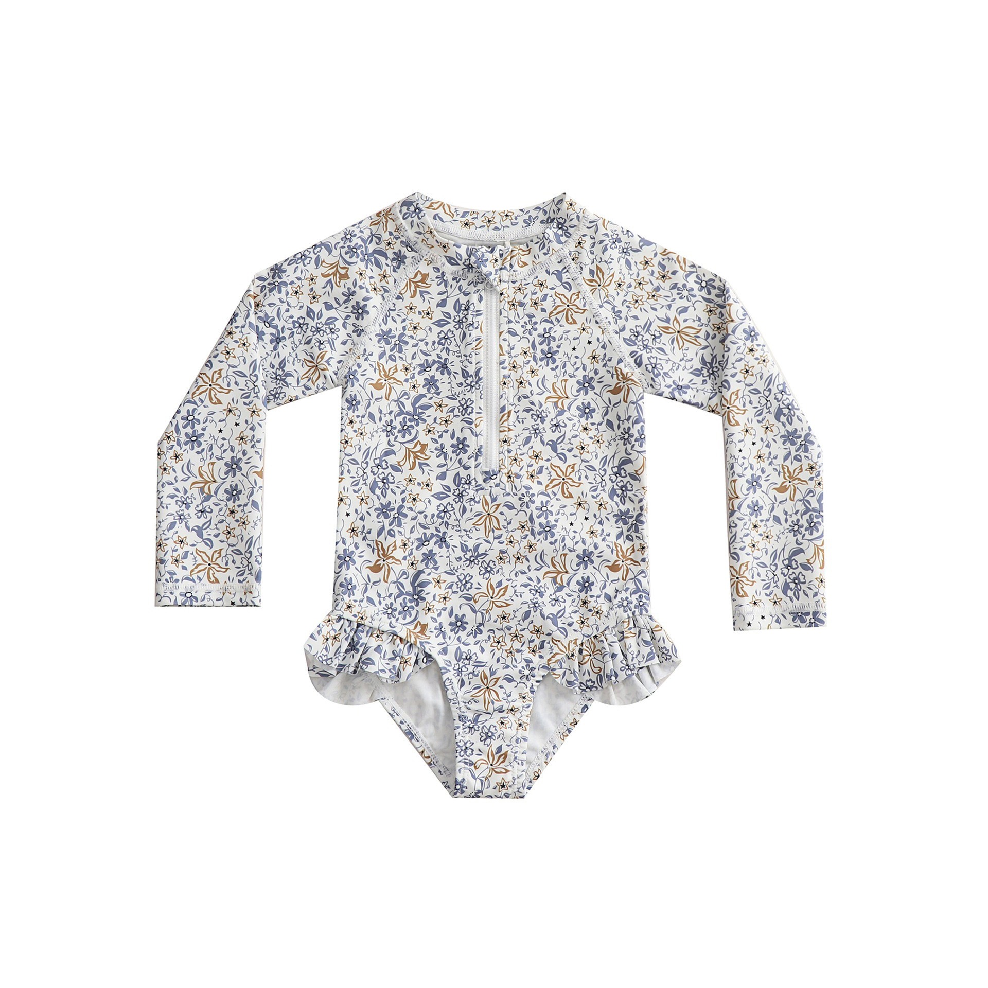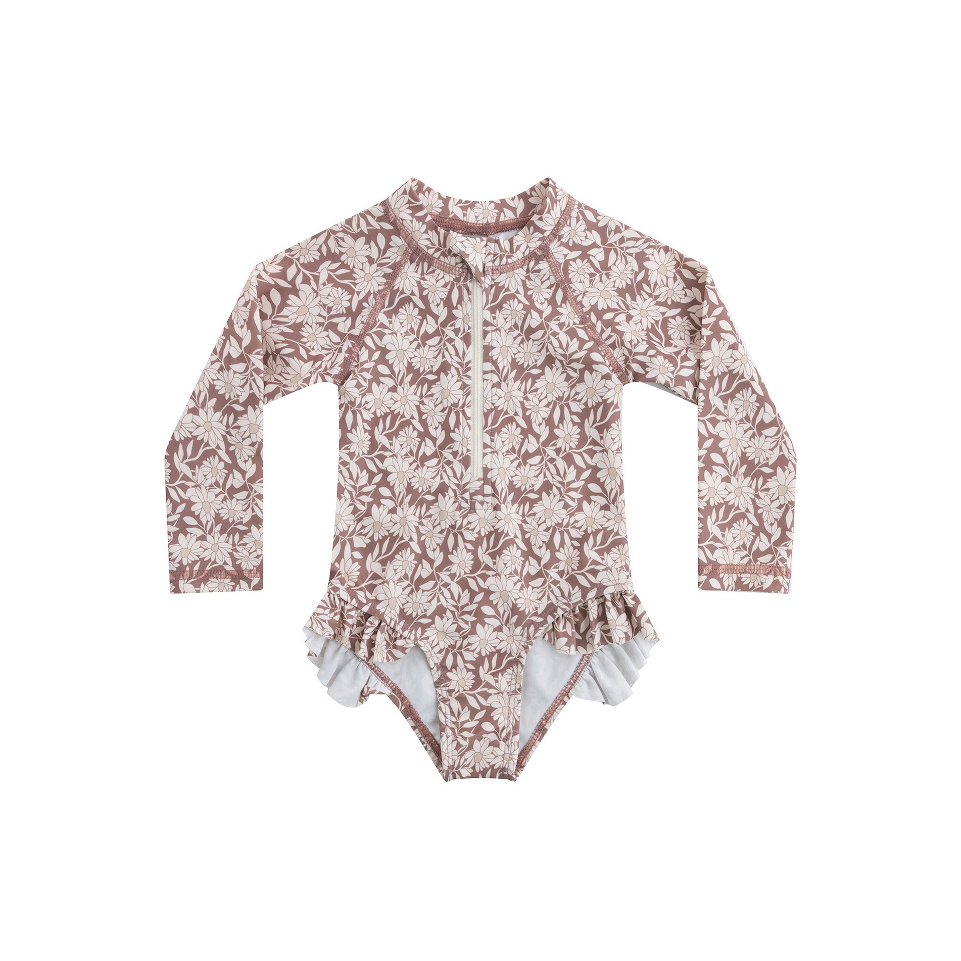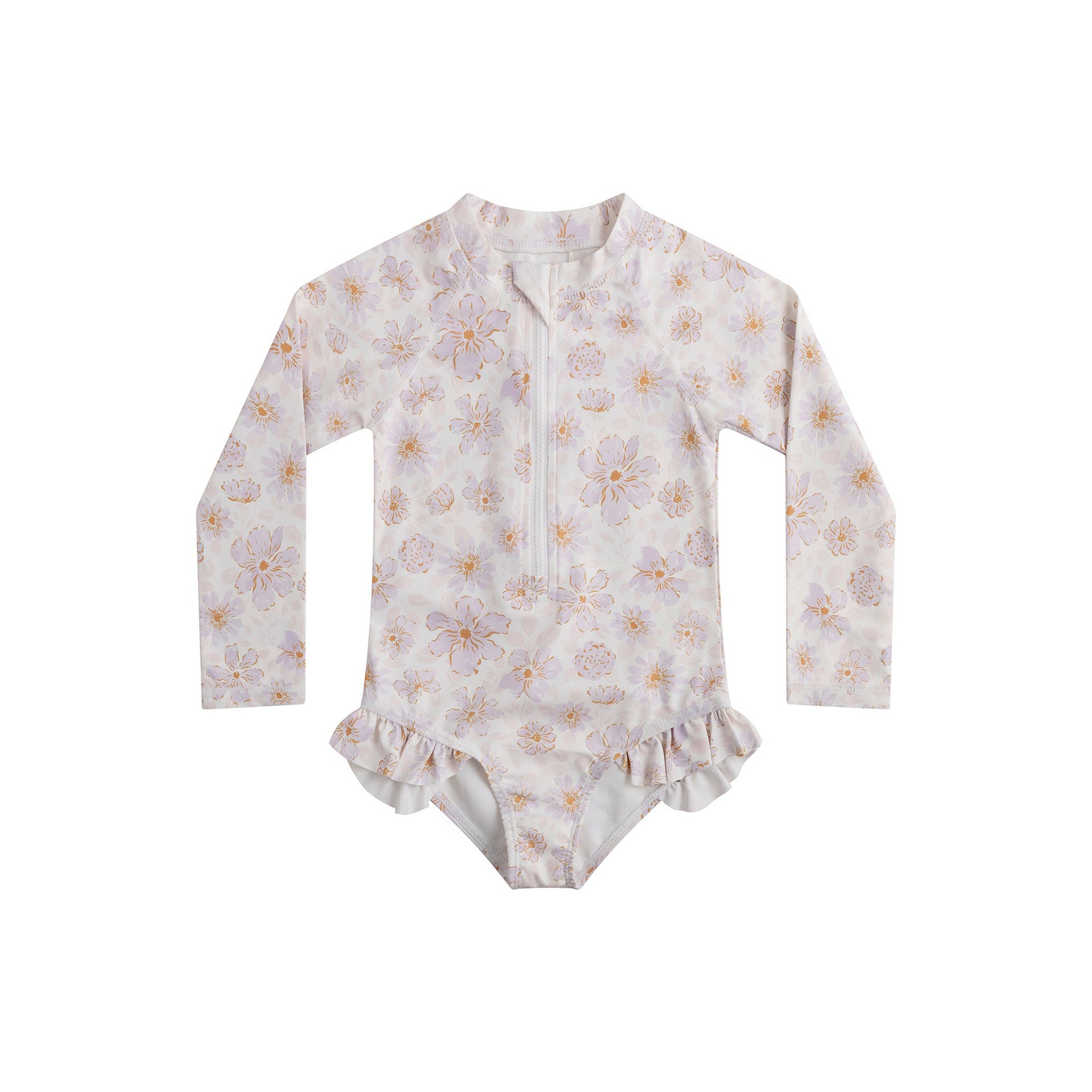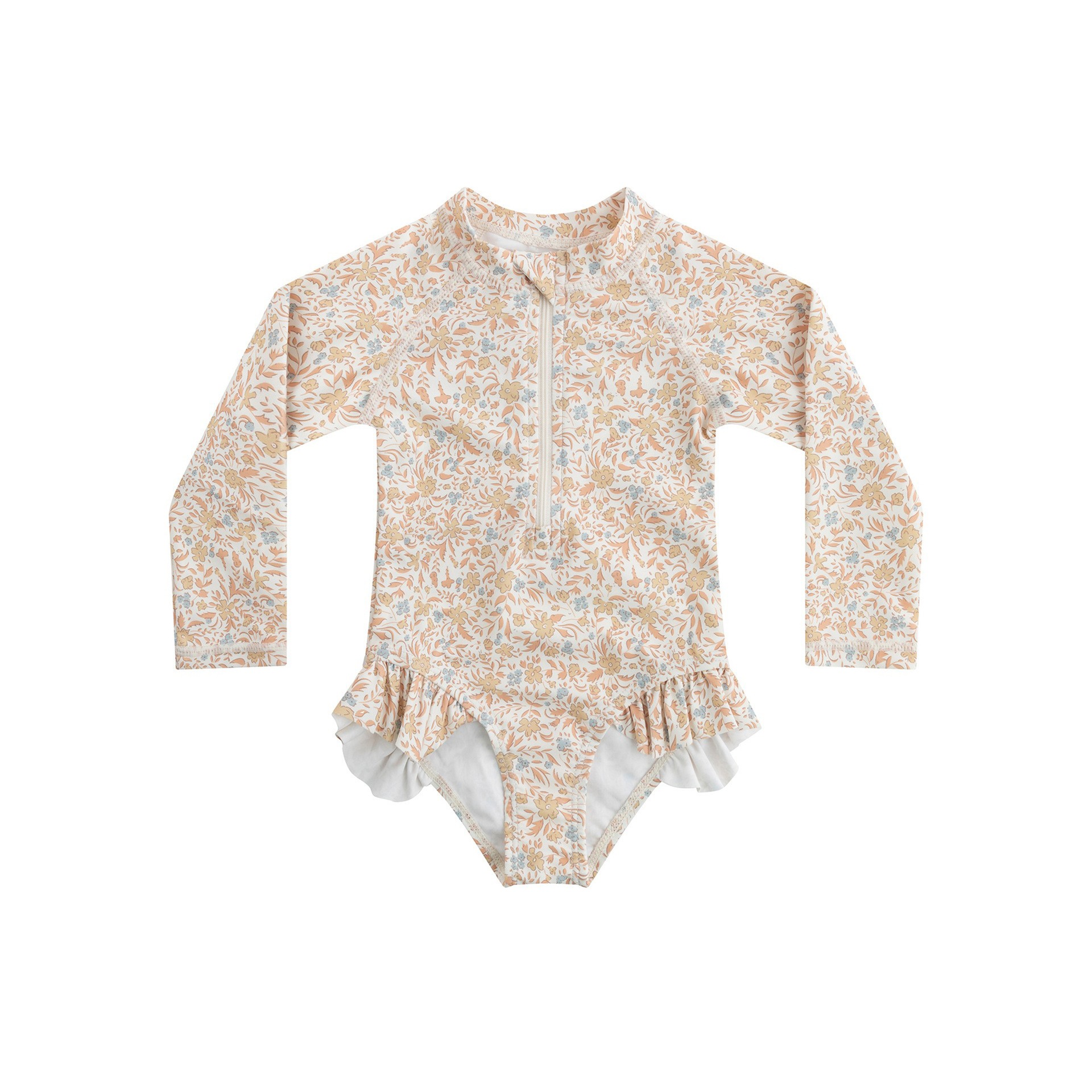 女児 つなぎ水着 長袖 UVカット 耐塩素 小花柄 インスタ風 可愛い ベビー 子供 スイムウェア プール 海 ラッシュガード