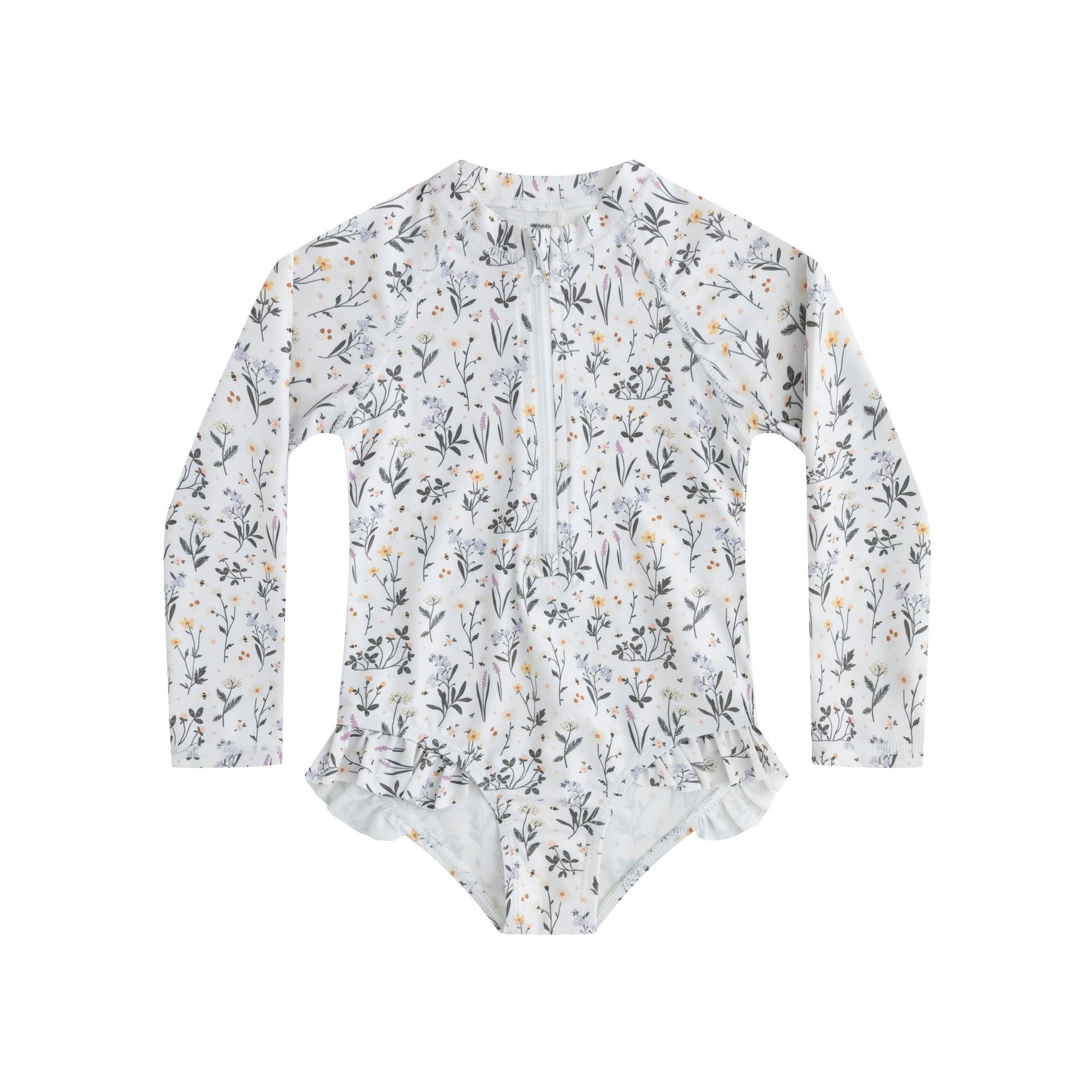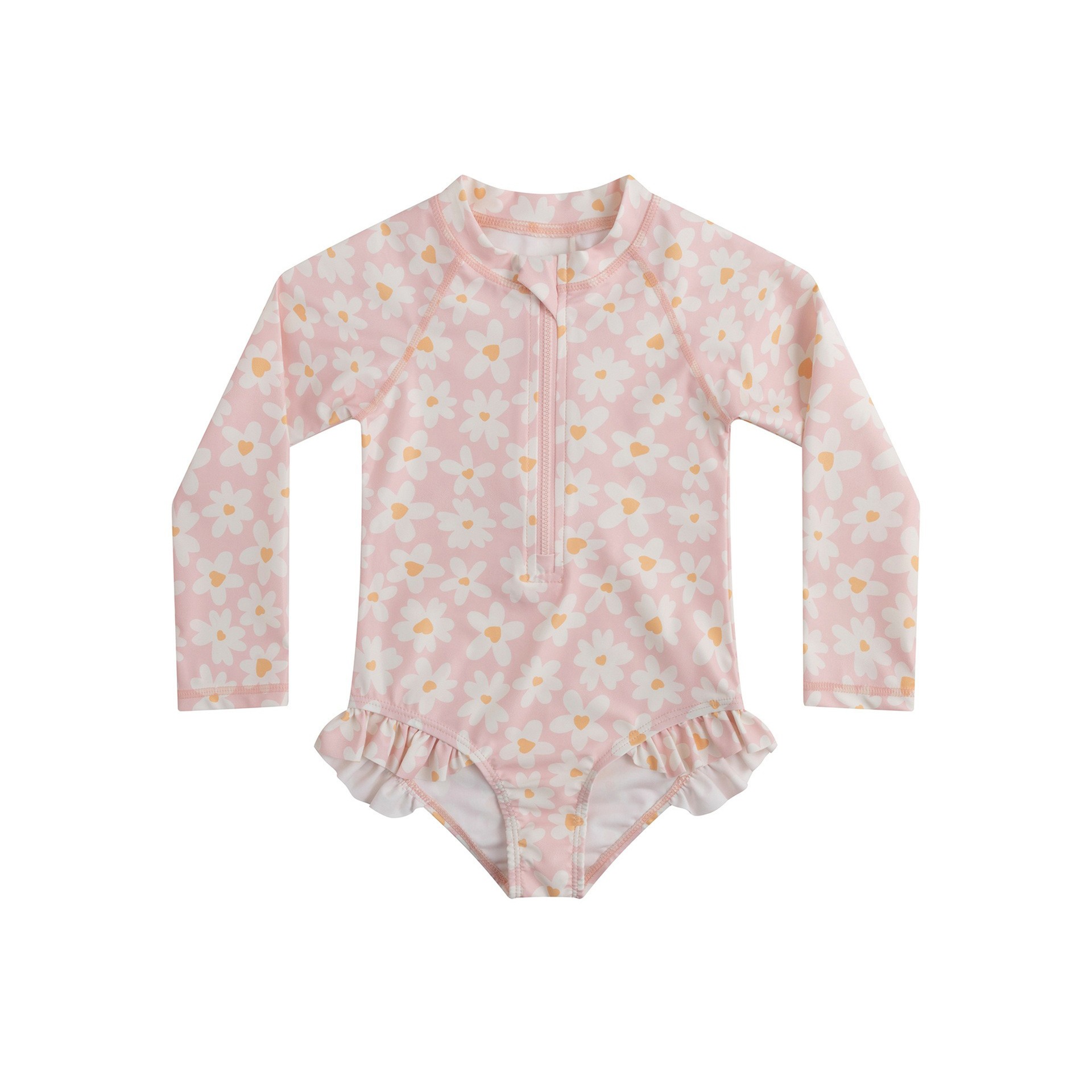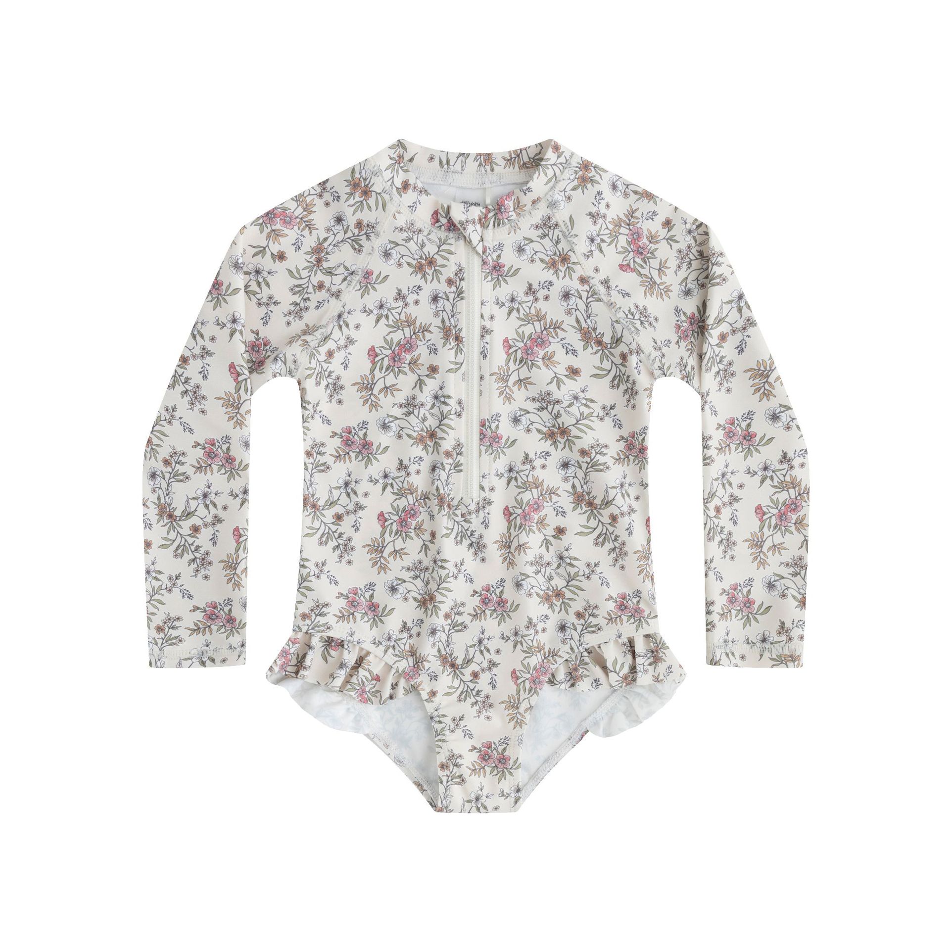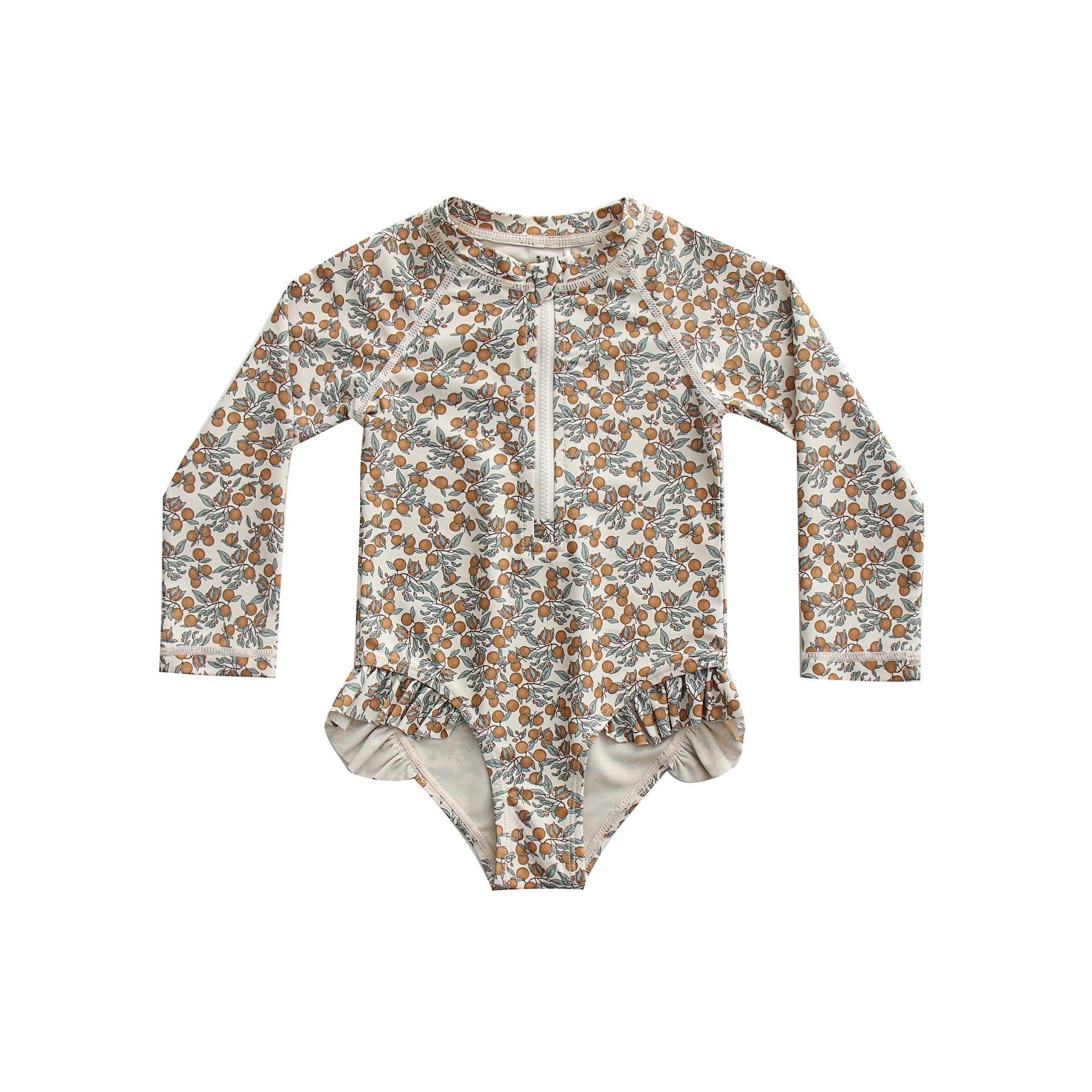 女児 つなぎ水着 長袖 UVカット 耐塩素 小花柄 インスタ風 可愛い ベビー 子供 スイムウェア プール 海 ラッシュガード