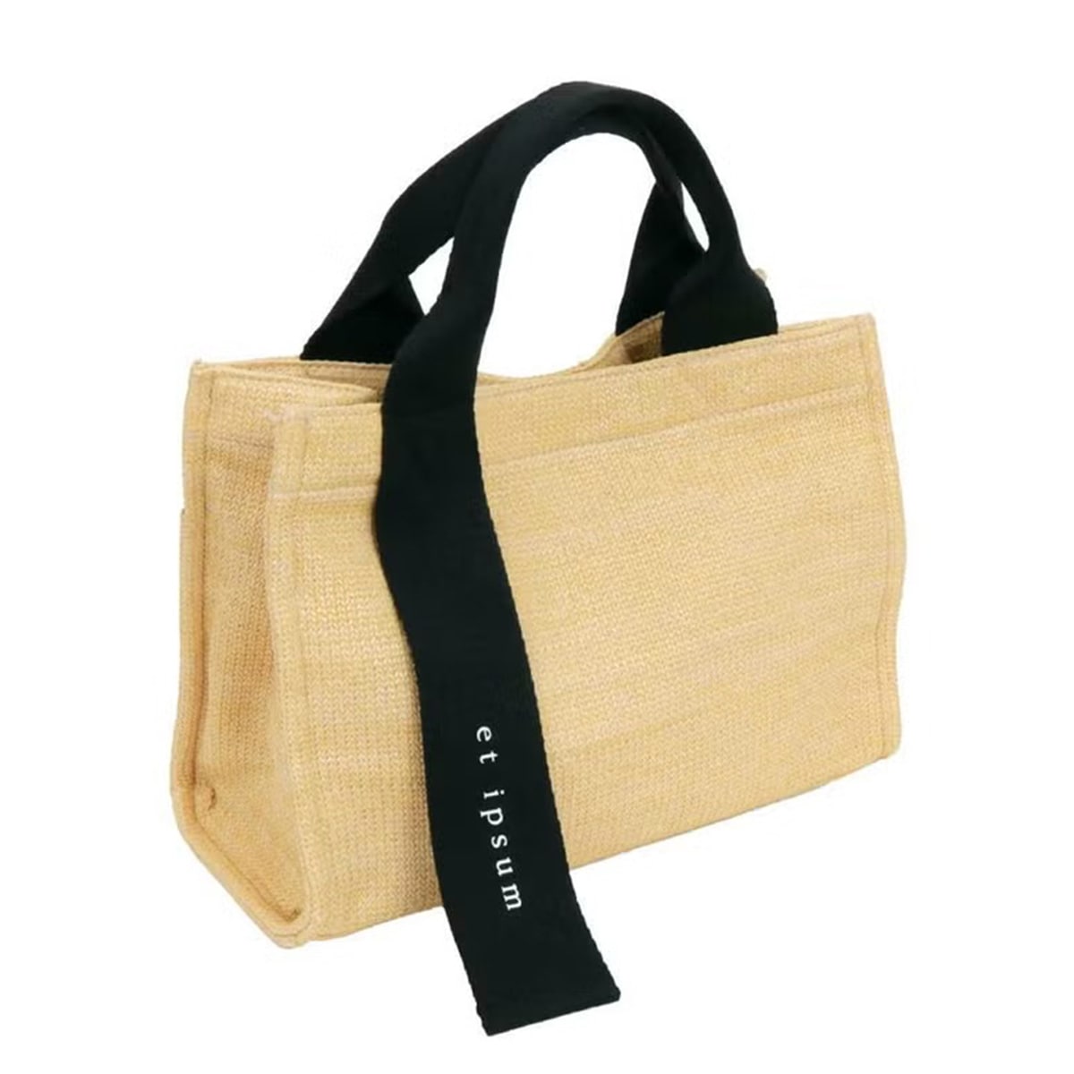 リアル スタイルaristella ロゴリボンテープハンドル 雑材風 トートバッグ レディース 軽量 ミニトート ハンドバッグ 小さめ B5 マチ広 自立 手提げ 手持ち 夏 ナチュラル おしゃれ 通勤