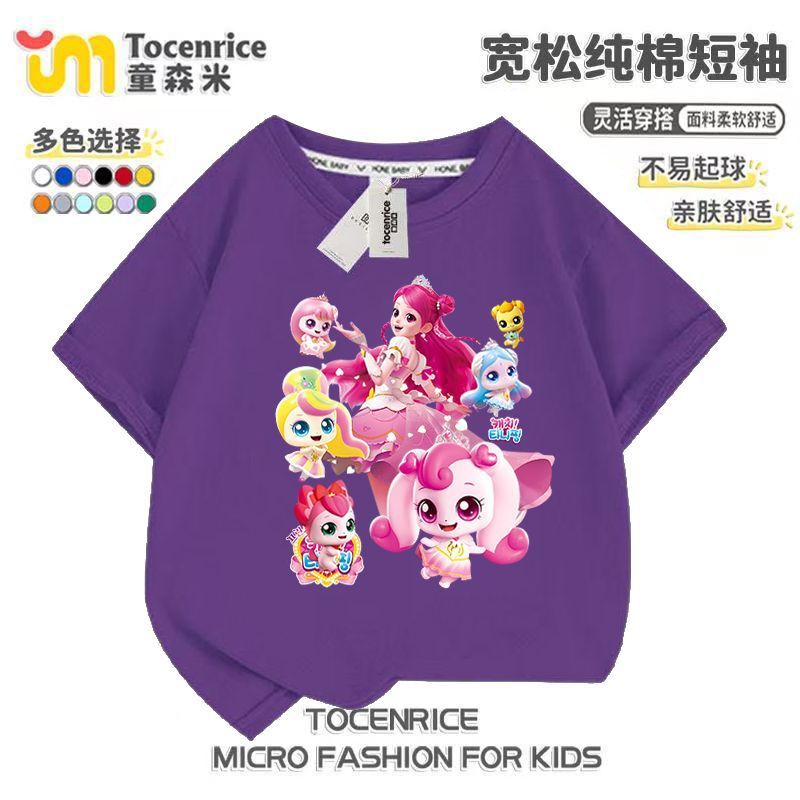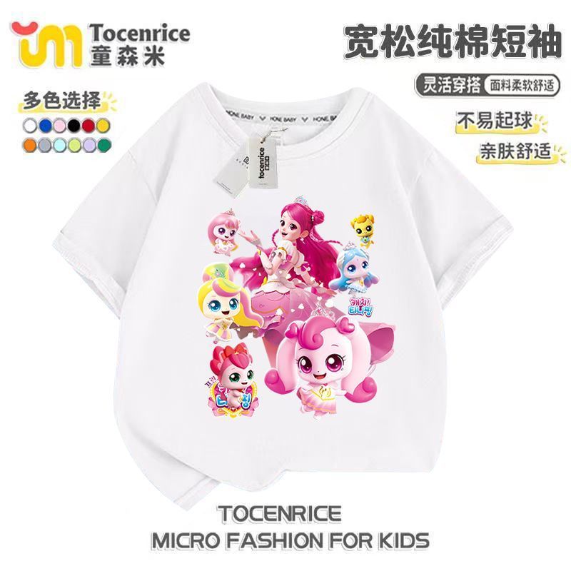 2025 新作 キャッチ ティニピン グッズ 女の子 半袖 夏 Tシャツ ラウンドネック 綿 トップス