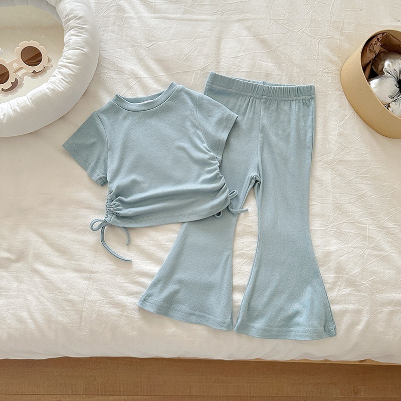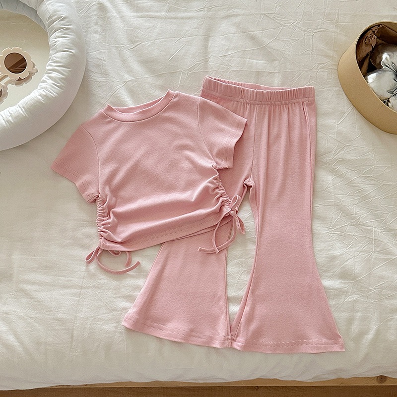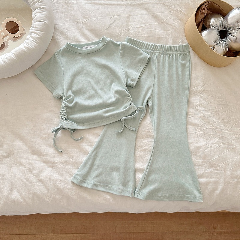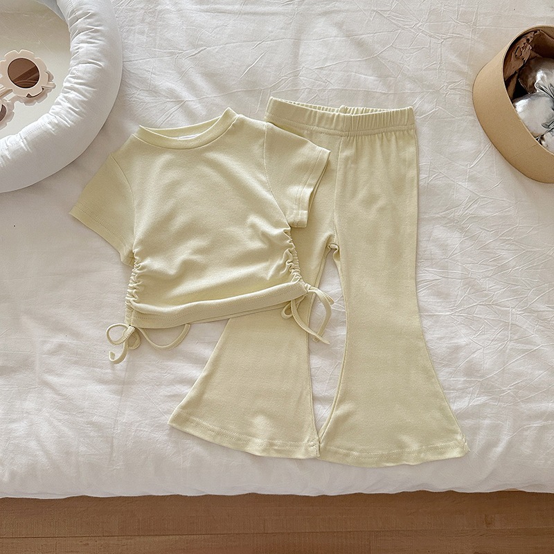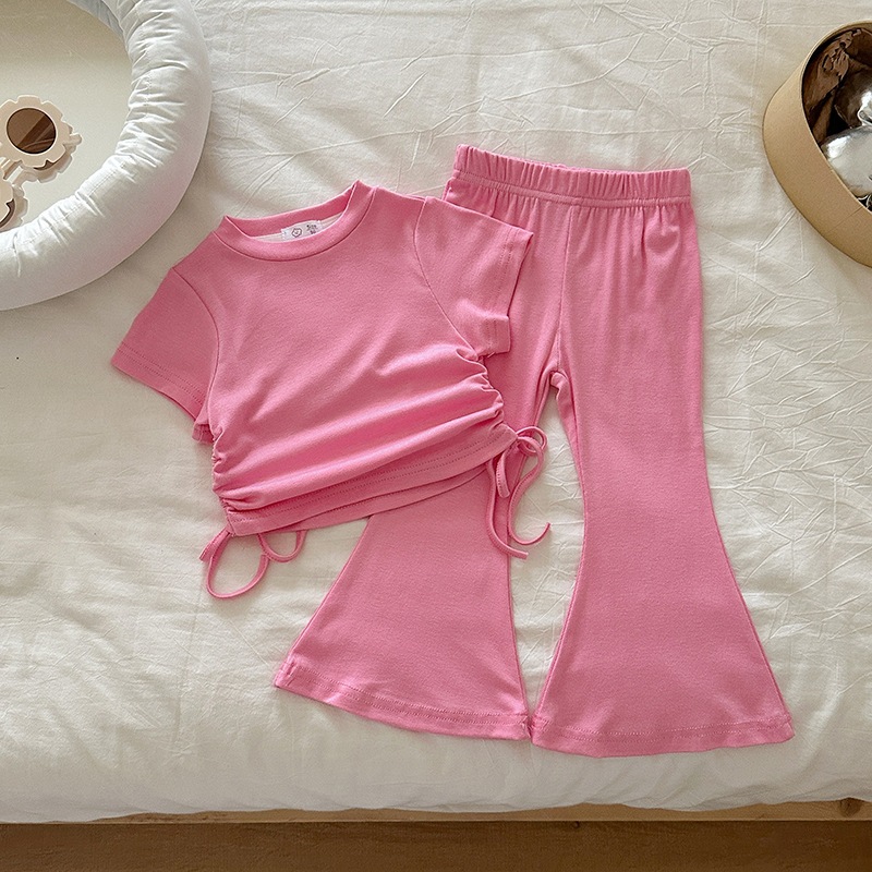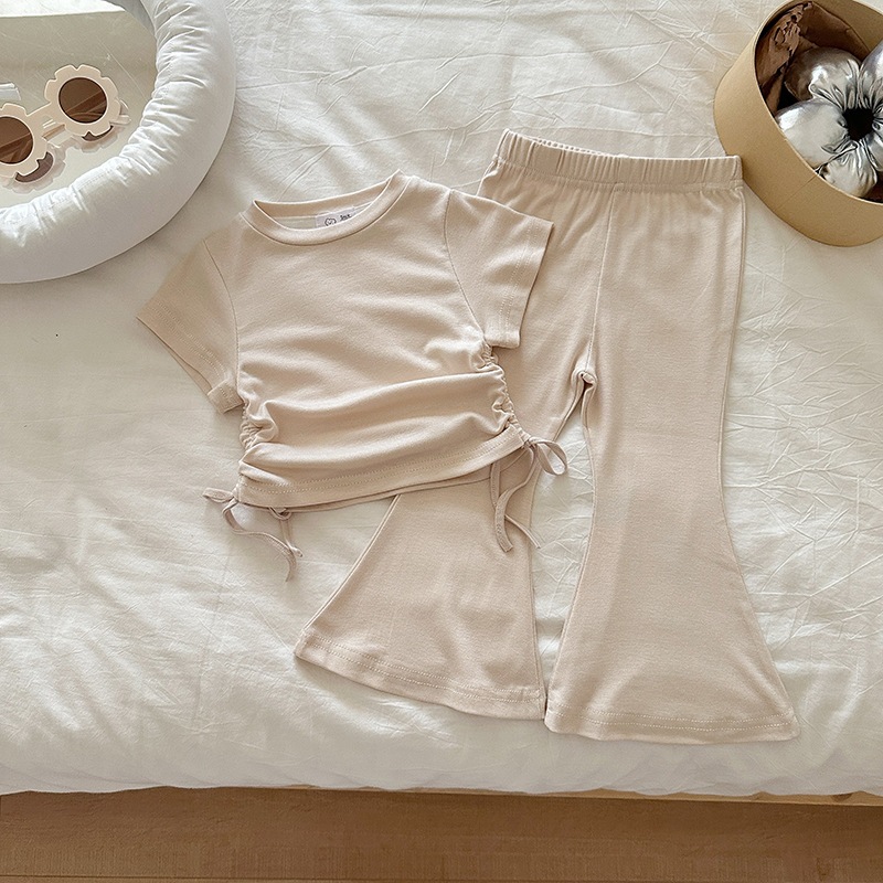 女の子 夏 セットアップ 韓国風 ドローストリング 半袖 パンツ 無地 2点 セット 2026 新作