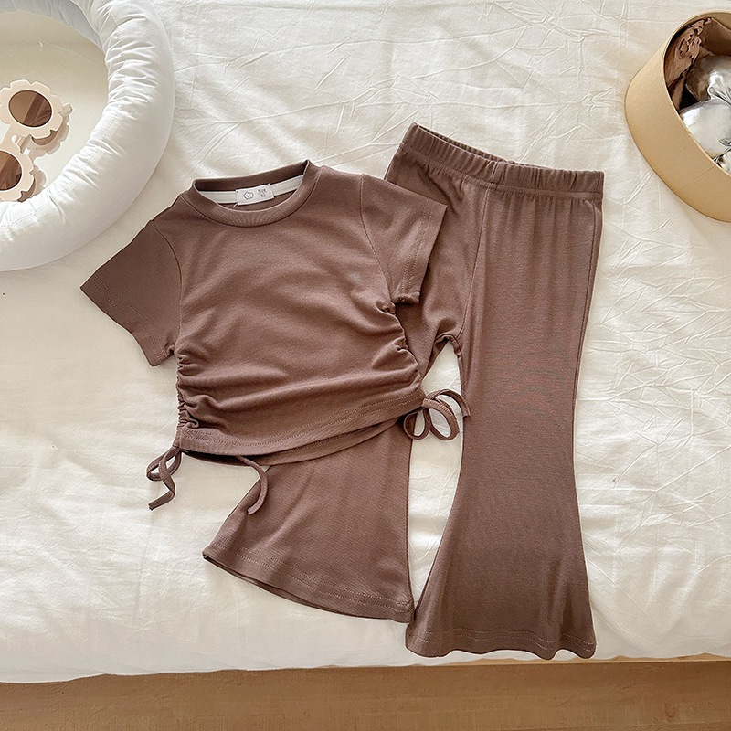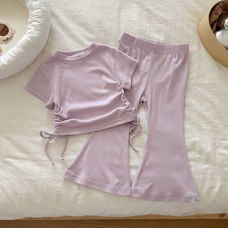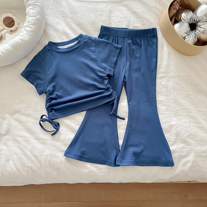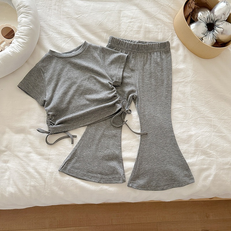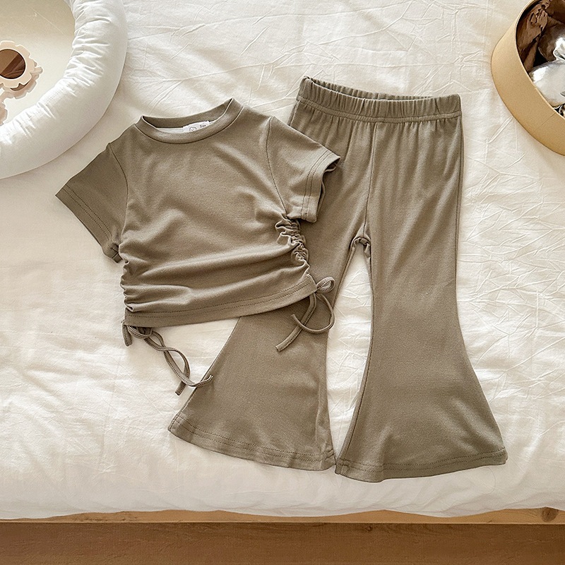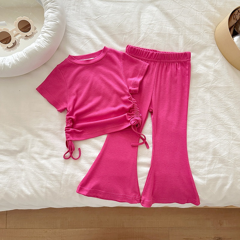 女の子 夏 セットアップ 韓国風 ドローストリング 半袖 パンツ 無地 2点 セット 2026 新作
