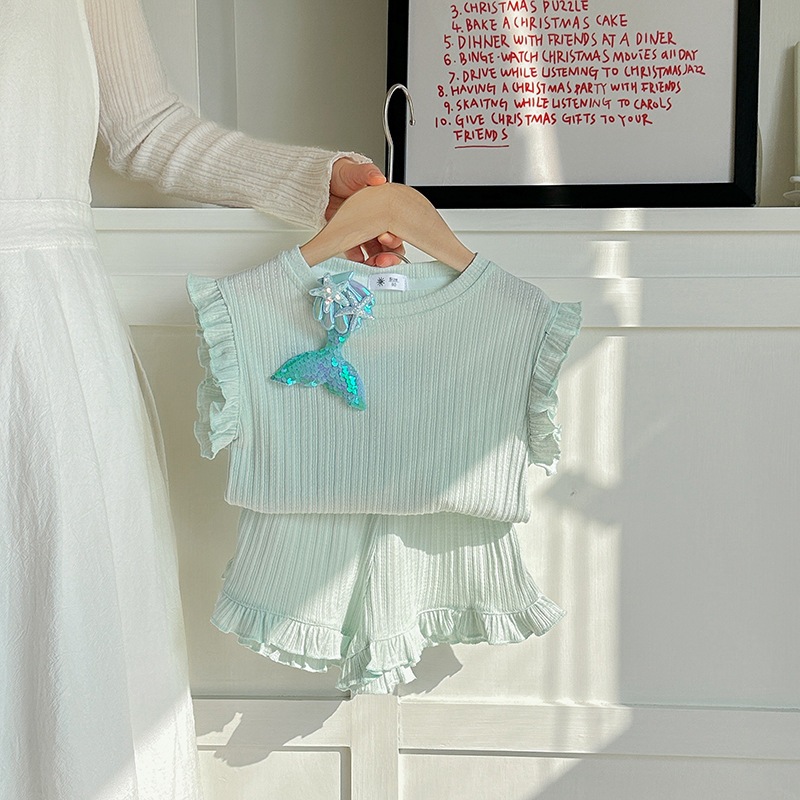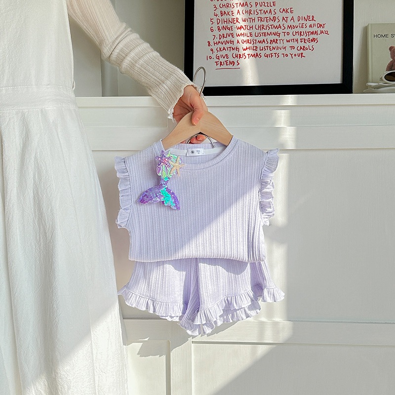 女の子 夏 セットアップ 2026 韓国風 ノースリーブ タンクトップ ショートパンツ 2点 綿 プリンセス