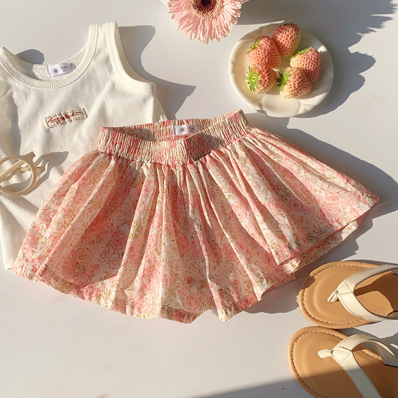 女の子 韓国風 レトロ 綿 ショートパンツ 2026 春夏 新作 小花 パニエ プリンセス パンツ