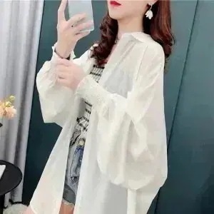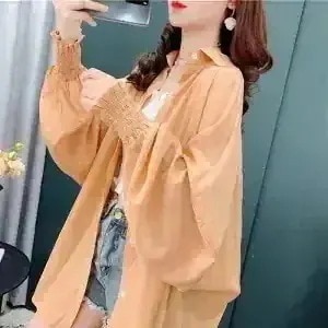 【即納】【3枚ご購入で200 OFF!】リブニット ブラウス 百掛け日焼け止め おしゃれ 着痩せ ゆったり アイスシルク アウター シャツ 日焼け防止シフォン 春夏 韓国風 シフォンブラウス紫外線対策