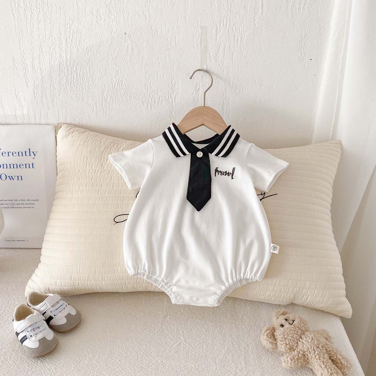 【即納】【3枚ご購入で200 OFF!】ボトムス 夏 ロンパース 女子 ロンパース 男子 ロンパース ロンパース サマーベビー服半袖学院ポロ襟服男女ベビー刺繍襟衣
