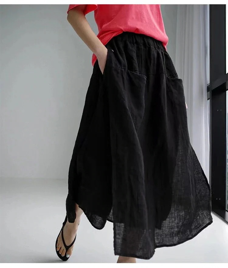 【即納】【3枚ご購入で200 OFF!】スカート フレアパンツ 夏 ファッション 韓国風 レディースきれいめ ワイドパンツ 涼感 レディース 麻素材 無地 スカト キュロット ワイドパンツ