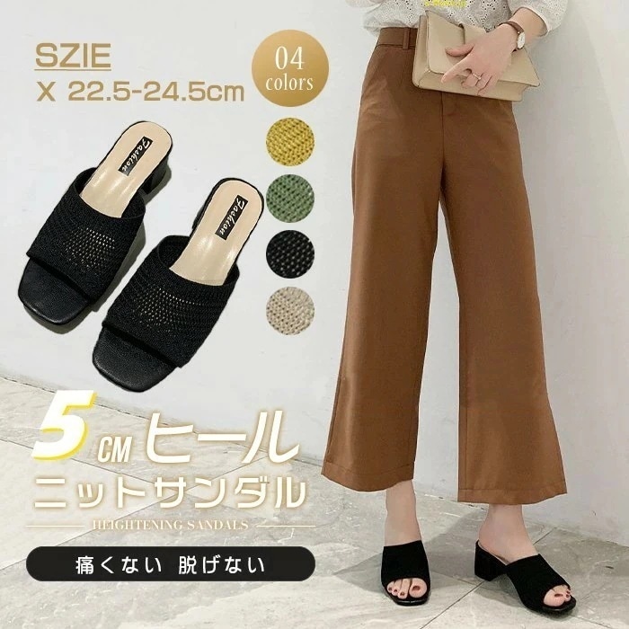 【即納】【3枚ご購入で200 OFF!】チャンキーヒールサンダル ニットサンダル ミュール レディース サンダル ミュール 痛くない 脱げない サンダル 美脚 疲れにくい