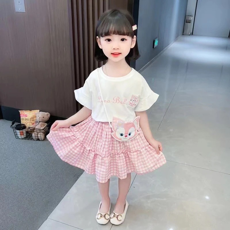 【即納】【3枚ご購入で200 OFF!】セットアップ 韓国風子供服 通学着 女子 キッズ キャラクター 夏 上下2点セット スカート tシャツ ステラルー 半袖 子供服 リーナベル 可愛い 大人気20