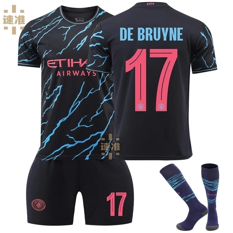 N「新品入荷*即納86」「新品入荷」「番号 個人名カスタマイズOK」サッカーウェア 子供 大人 2324マンチェスター・シティ2アウェーサッカー欧州冠版9番ハーランドユニホームセット 47番フォーデン
