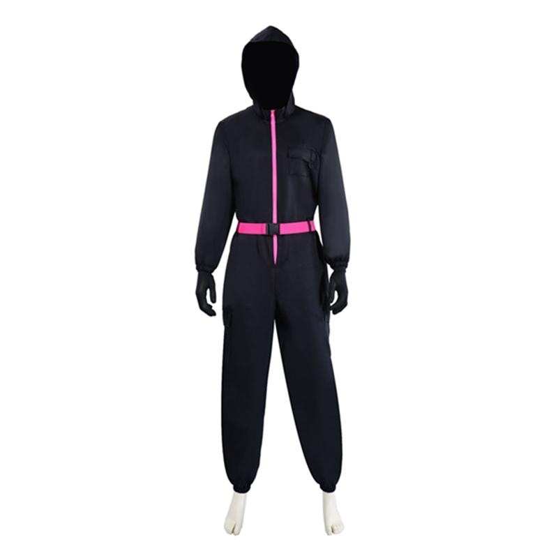 N「新品入荷*即納」イカゲーム Squid Game 警備員 監視員 BOSS コスプレ 衣装 赤いジャンプ 赤い服人 黒い マスクお面 コスチューム 大人用 子供用