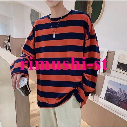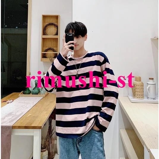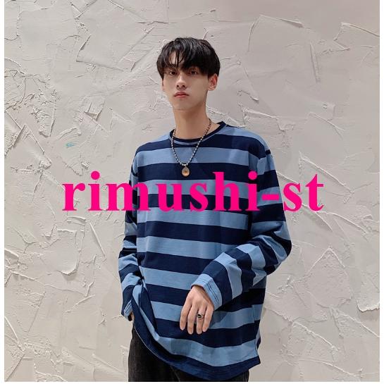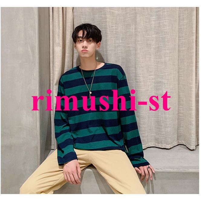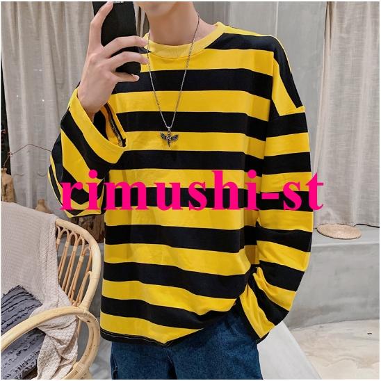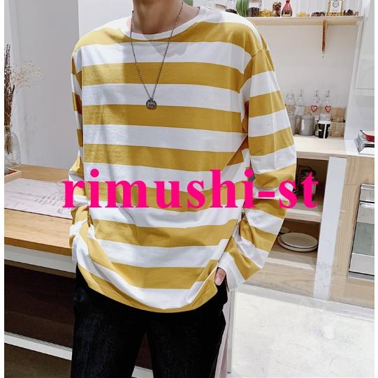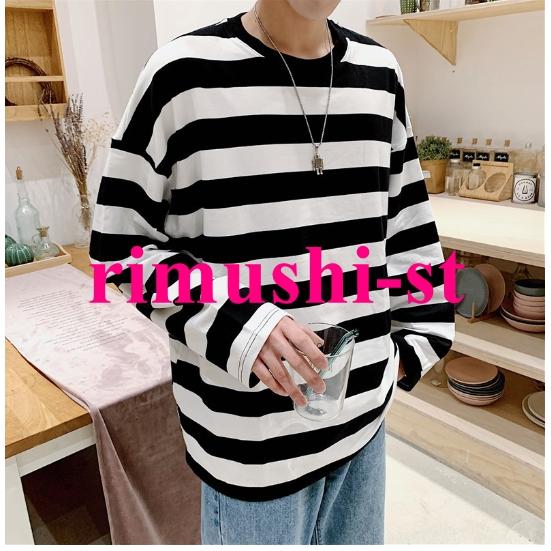 N3日で出荷 ロングTシャツ 秋服 メンズ ボーダーTシャツ オーバーサイズ ゆったり ロンT 長袖Tシャツ クルーネック トップス