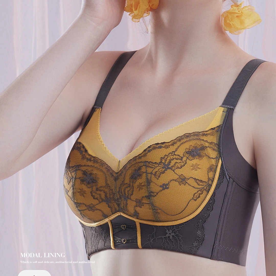 新しい下着の女性の無鋼の輪は副乳の小さい胸を収めて集まって大きい調整型のレースの夏の薄い金の上で文の胸を支えます