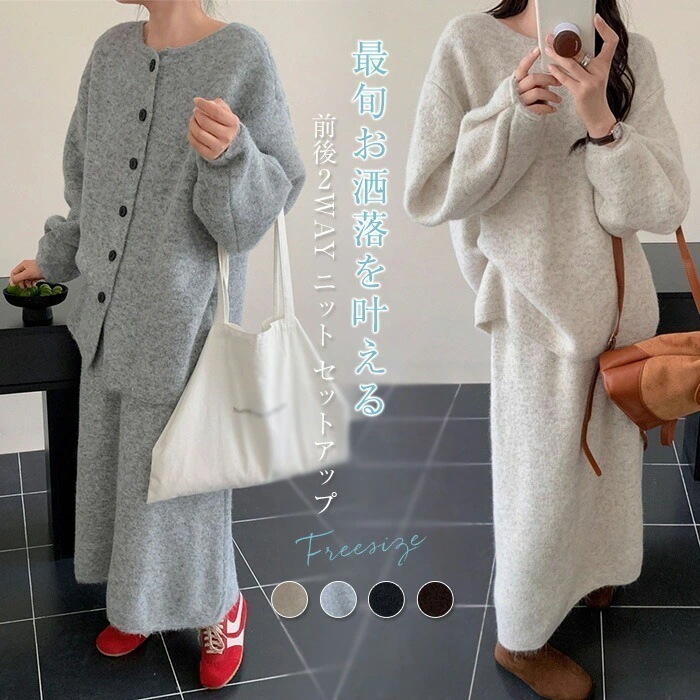 ニット セットアップ 秋冬 レディース ニット スカートスーツ セーター&スカート 2点セット キレイめ 秋冬セット ロングスカート ゆったり ニットスカート 女性 カジュアル 通勤 OL 体型カバ