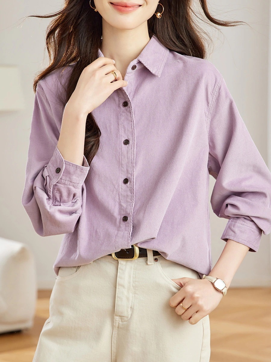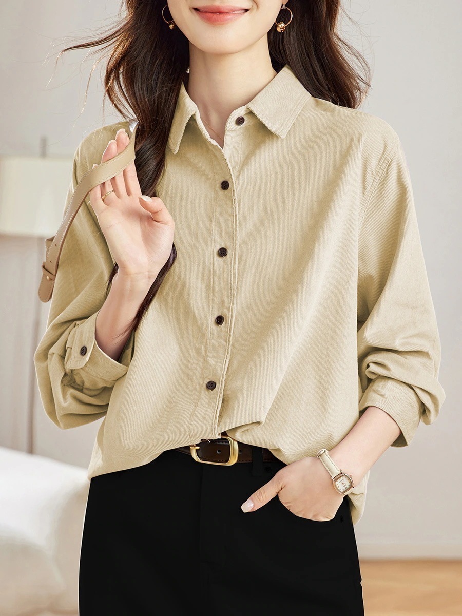 ゆったり無地コーデュロイブラウス シャツ2026春服新シンプル研ぎ毛厚手トップスレディースシャツ通勤トップス シャツ ブラウス