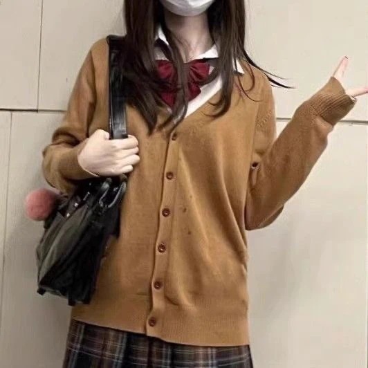 ニットカーディガン JK 制服 長袖 春と秋 ニット カーディガン Vネック 女子高生 制服 レディース ボタンカーディガン スクール風 コーディガン ライトアウター 高校生中学生 トップス