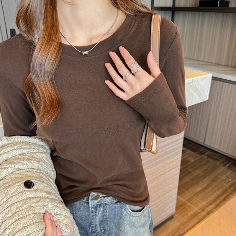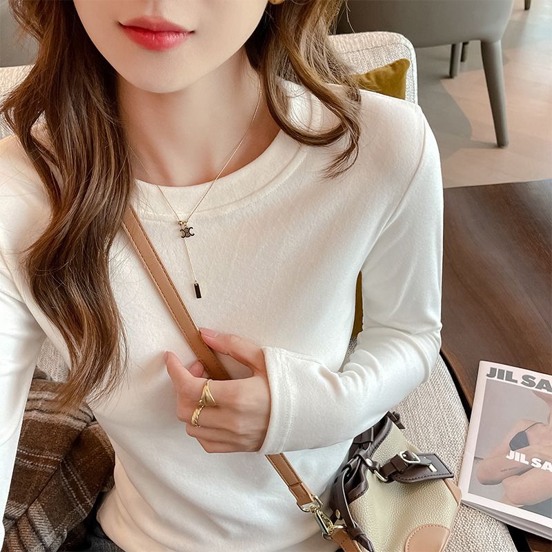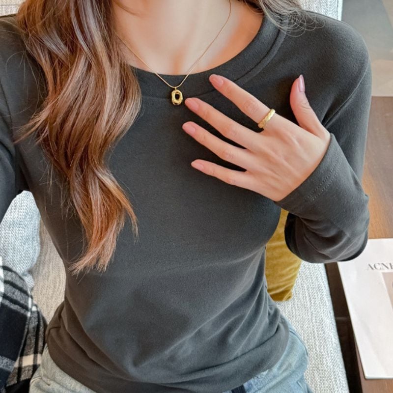 2026 春秋 新作 アンダーウェア ウォーム ラウンドネック 長袖 トップス レディース 高級感 コリアン風 長袖 Tシャツ レディース インナー 長袖