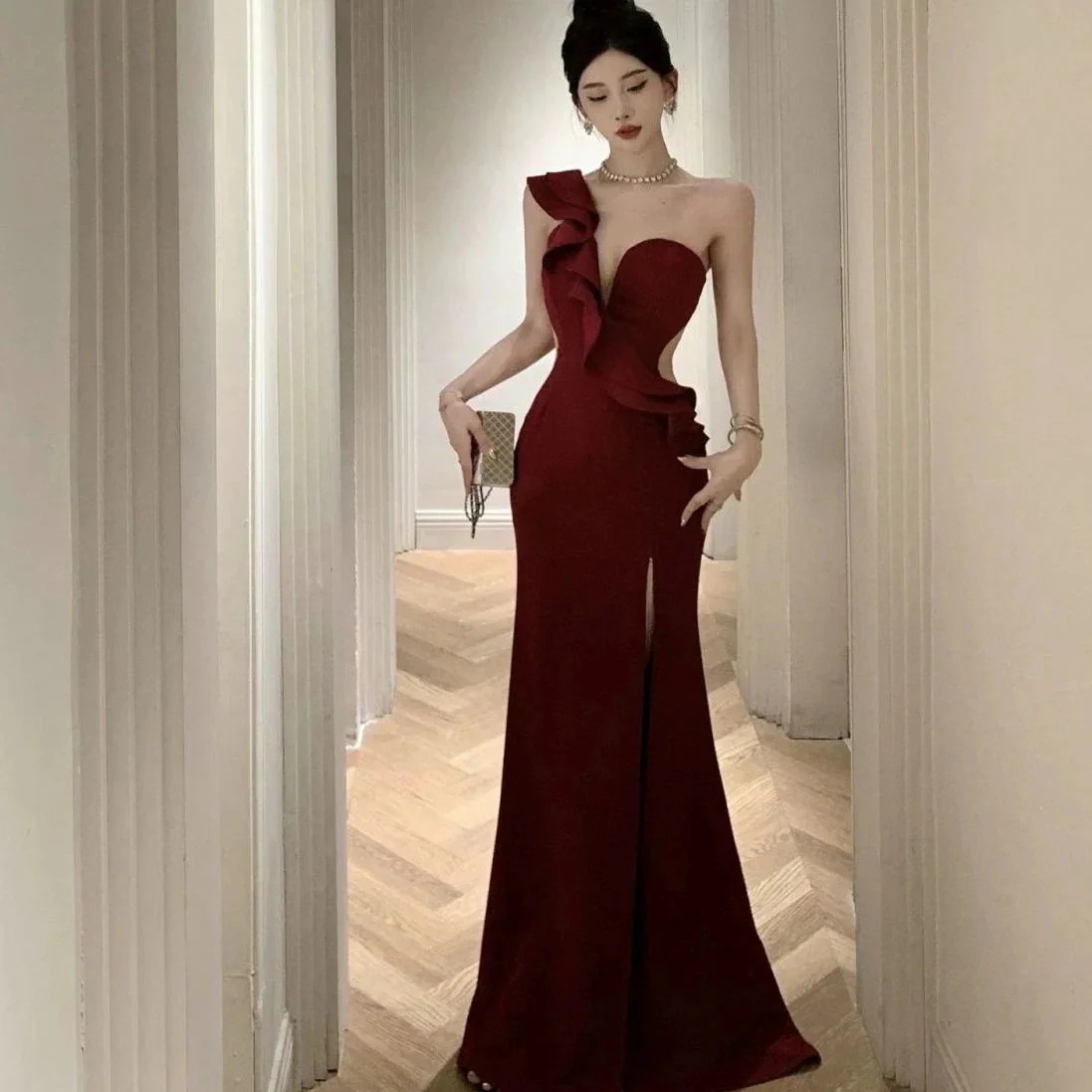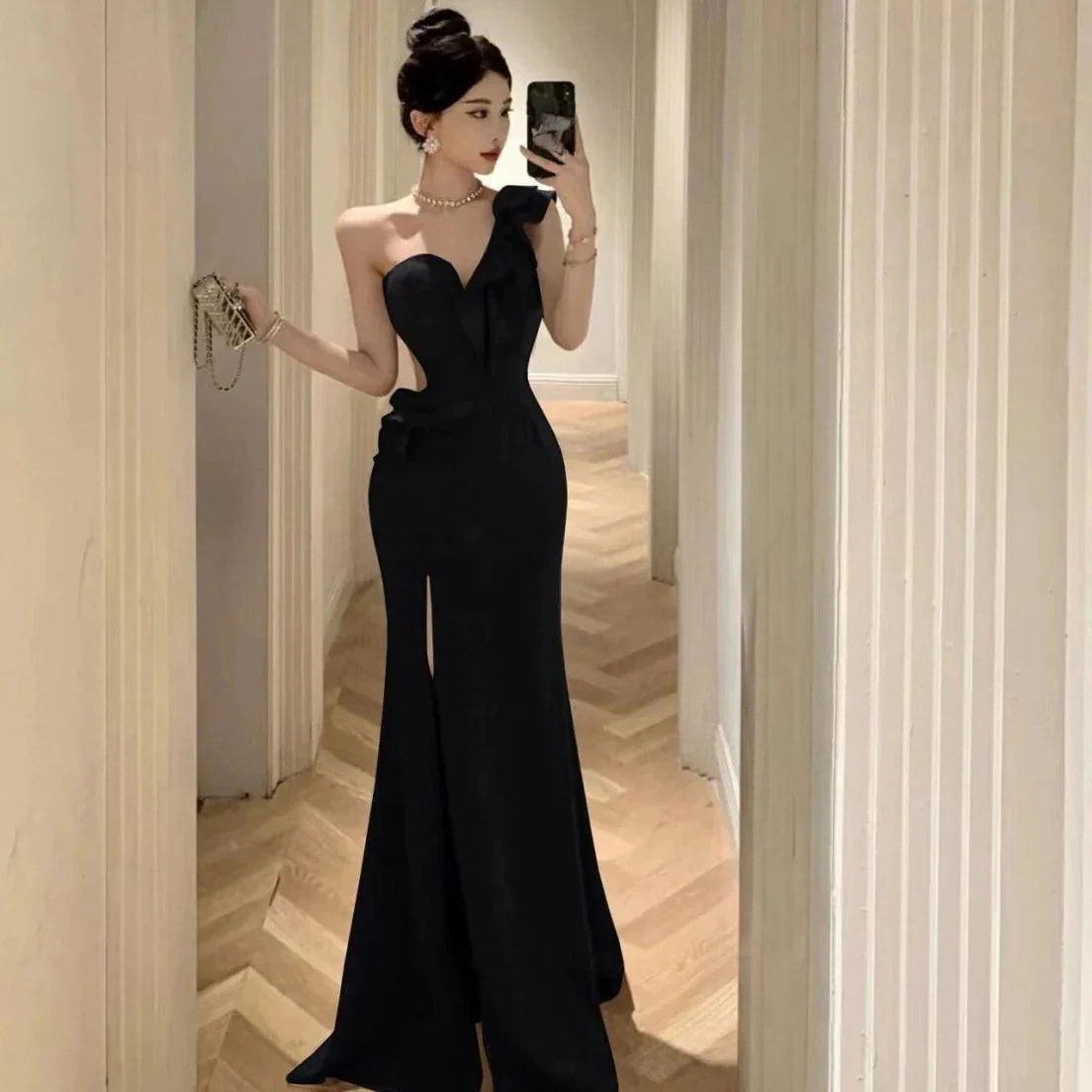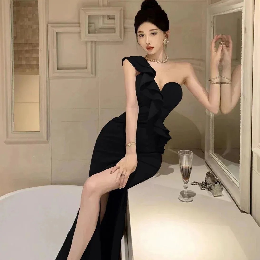 ワンピース ボディコンシャスフィットスカート イブニングドレス女性2026新作 気品あるオフショルダーウエスト絞りスリットロングドレス ドレス
