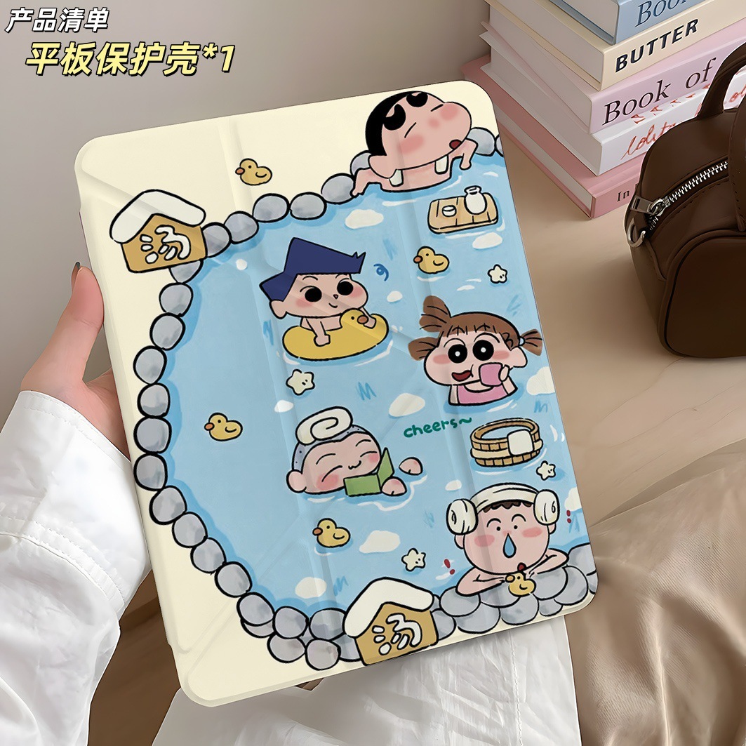 Y折 温泉 クレヨンしんちゃん iPad Pro11インチ Mini7 保護ケース 10世代 A16 タブレット Air6 保護ケース クリア