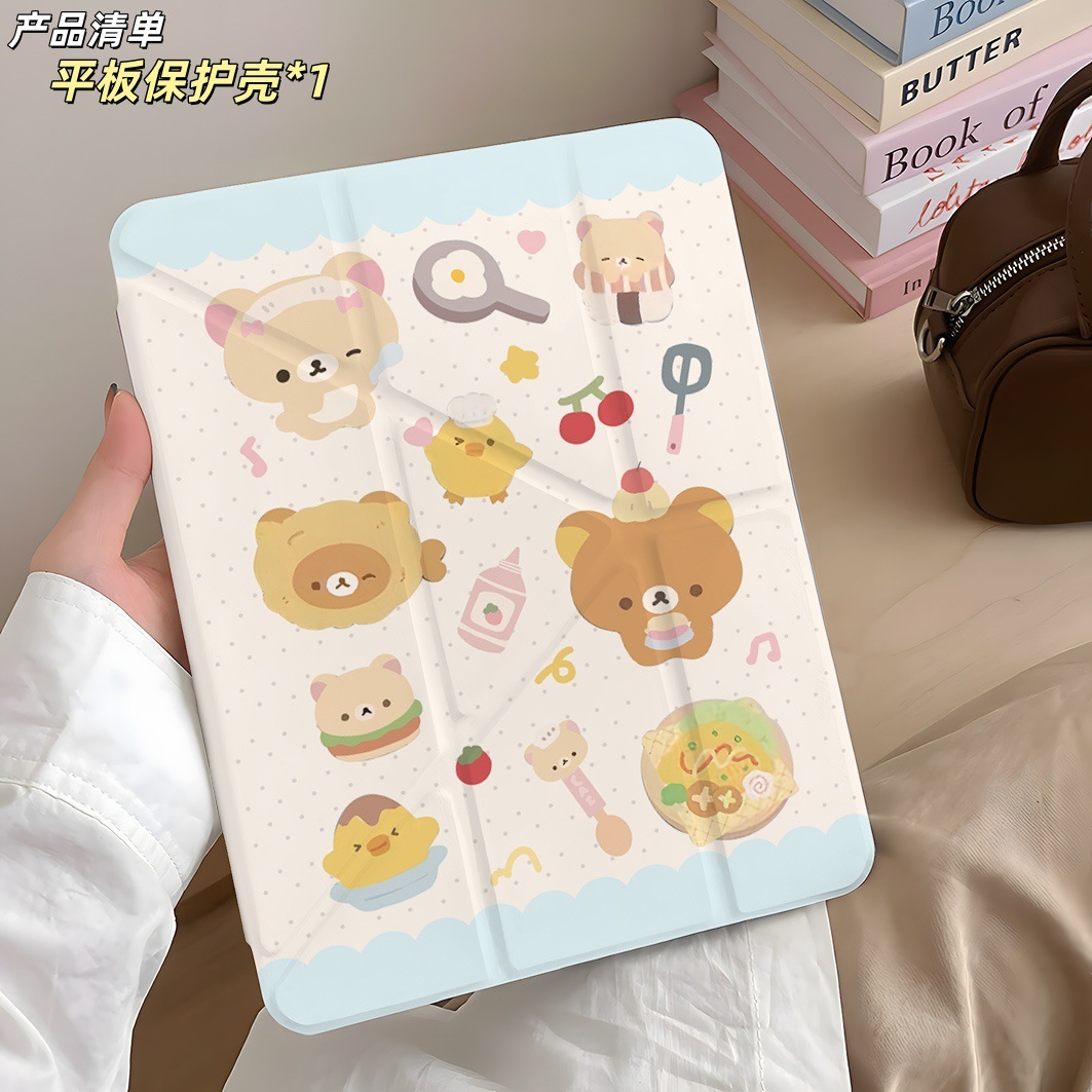 Y折 カートゥーン 熊 目玉焼き iPad A16 タブレット Pro11インチ Air6 保護ケース 10 9 8世代 Mini7 保護ケース