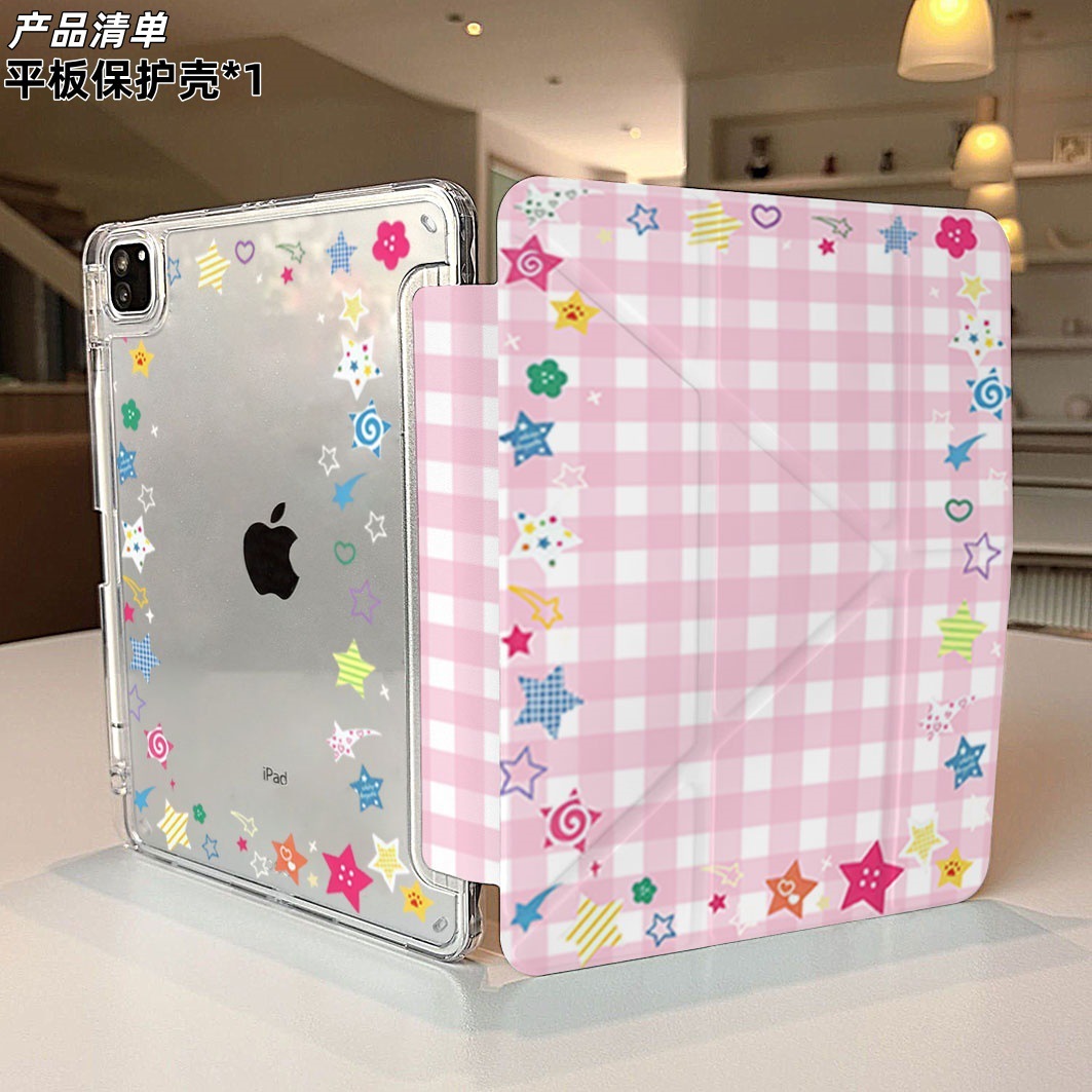 ピンク ギンガムチェック カラフル 星 iPad Pro11インチ 12世代 A16 保護ケース Mini7 タブレット Air6 7 8 保護ケース 5