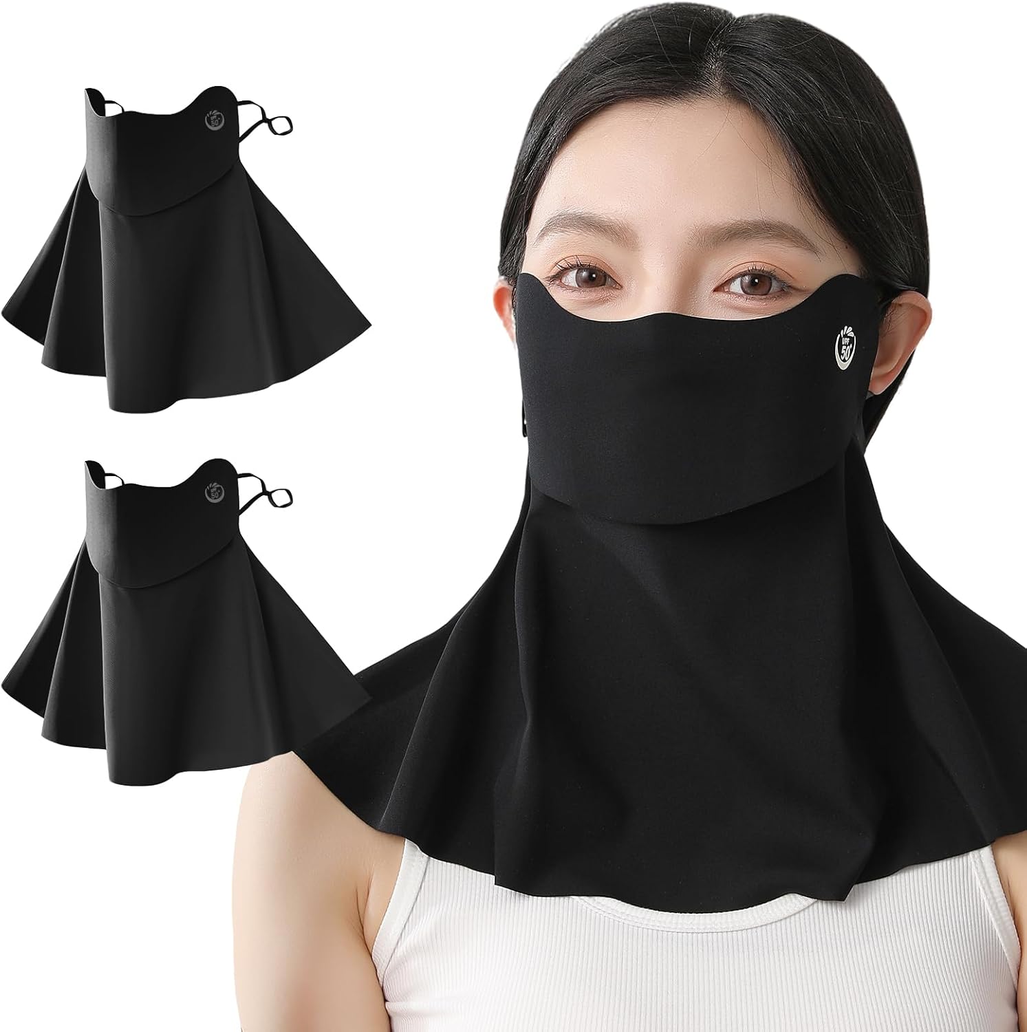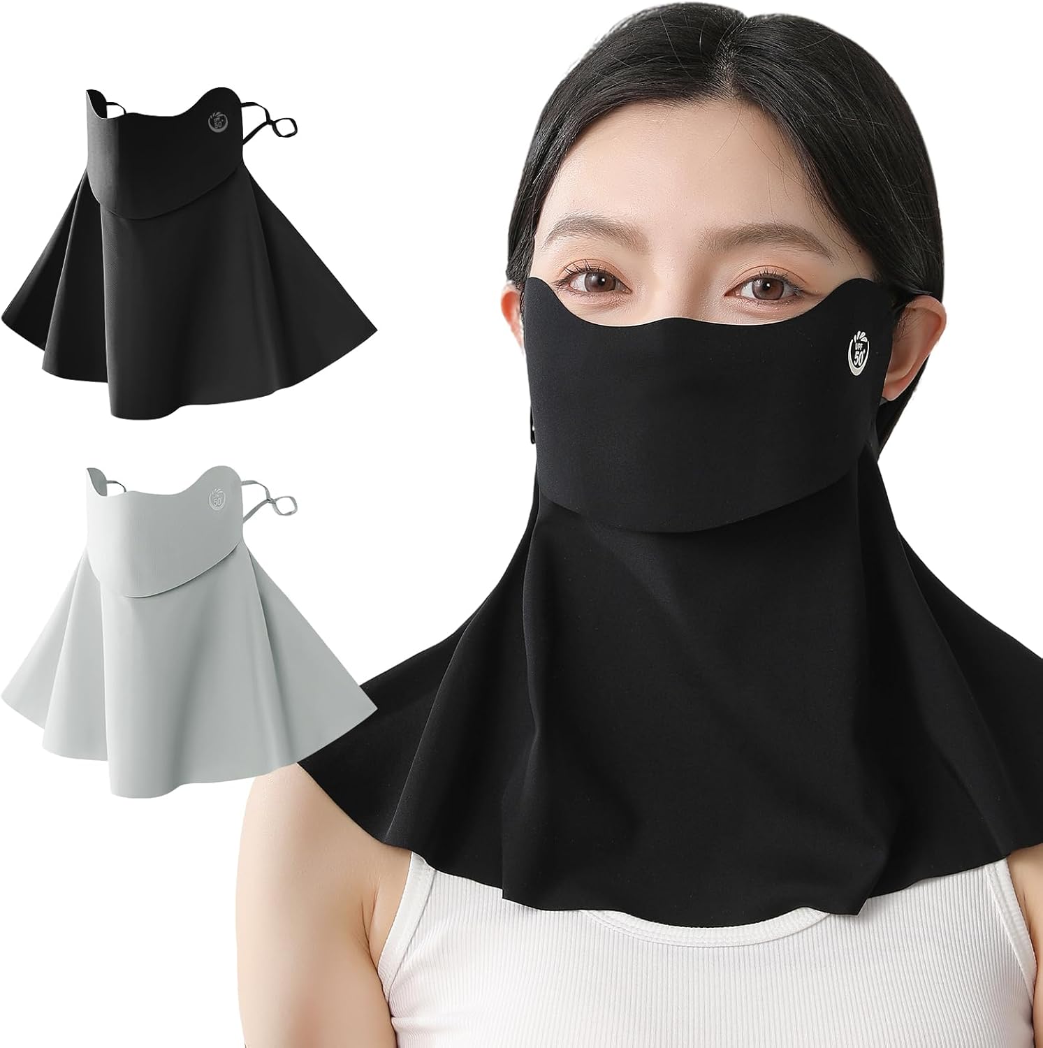 | 材料/素材 | [] フェイスカバー 日除けマスク [革新開口部セパレート・360°徹底ガード・ UPF50+認証済み] 夏 フェイスガード 息苦しくない 接触冷感 紫外線対策 日焼け防止 ひんやり 速乾 通気性 伸縮性 小顔効果 UVカットマスク 耳紐調節可能 | ||