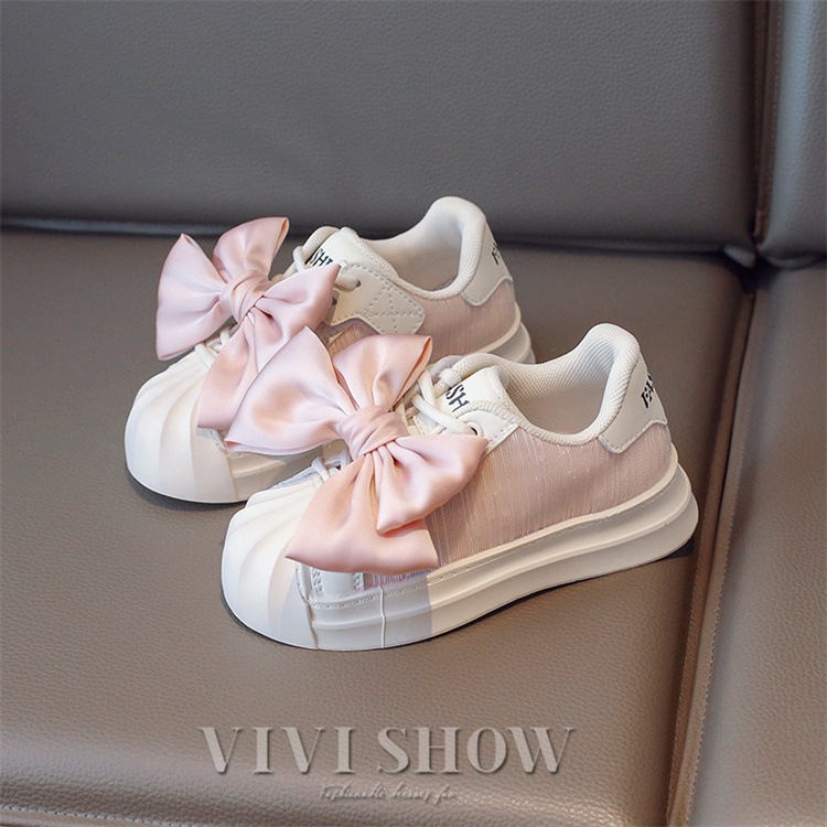 スニーカー キッズ ジュニア 子供 靴 かわいい リボン つま先ゆったり 歩きやすい ガールズ かわいい