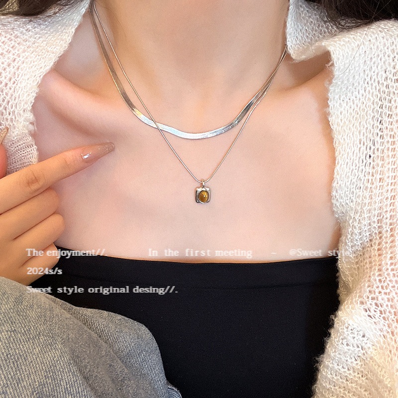 高級感 二重 重ね付け チョーカー タイガーアイ ペンダント ネックレス 女性 インスタ映え ネックレス