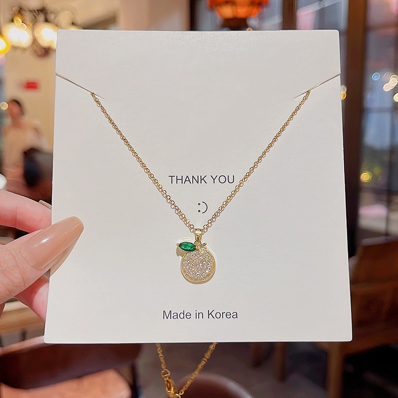 小清新 可愛い レモン チタンスチール ネックレス 女性 インスタ映え スタイリッシュ 精巧 ダイヤモンド 超キラ チョーカー ネックレス