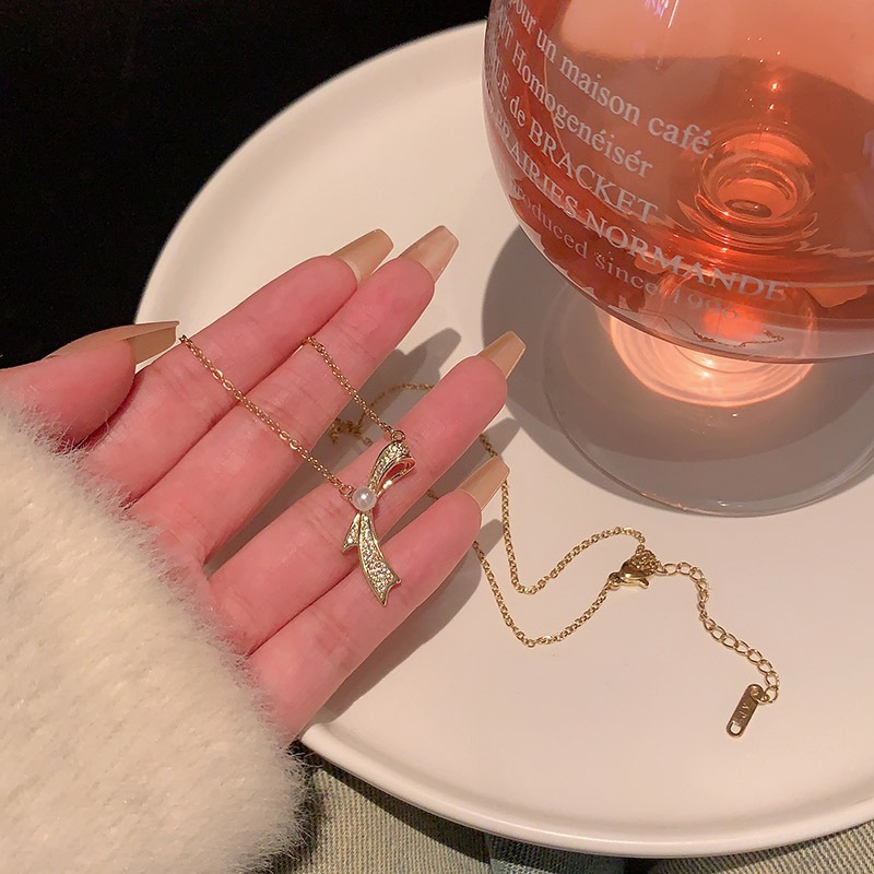 ダイヤモンド リボン チタンスチール ネックレス 女性 インスタ映え スタイリッシュ パール チョーカー