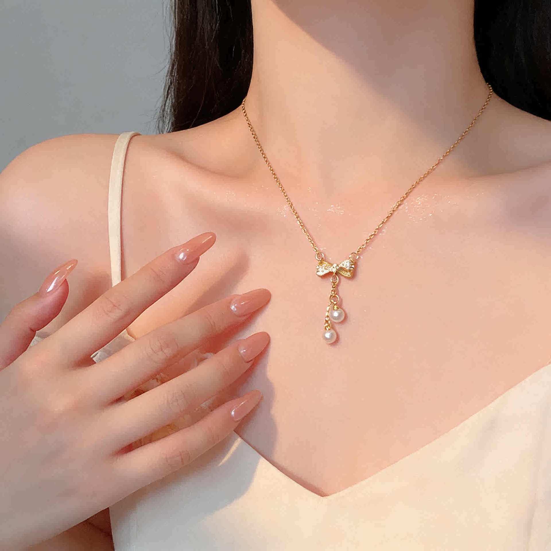 スタイリッシュ ロング タッセル リボン ペンダント ネックレス 女性 高級感 チタンスチール チョーカー ネックレス