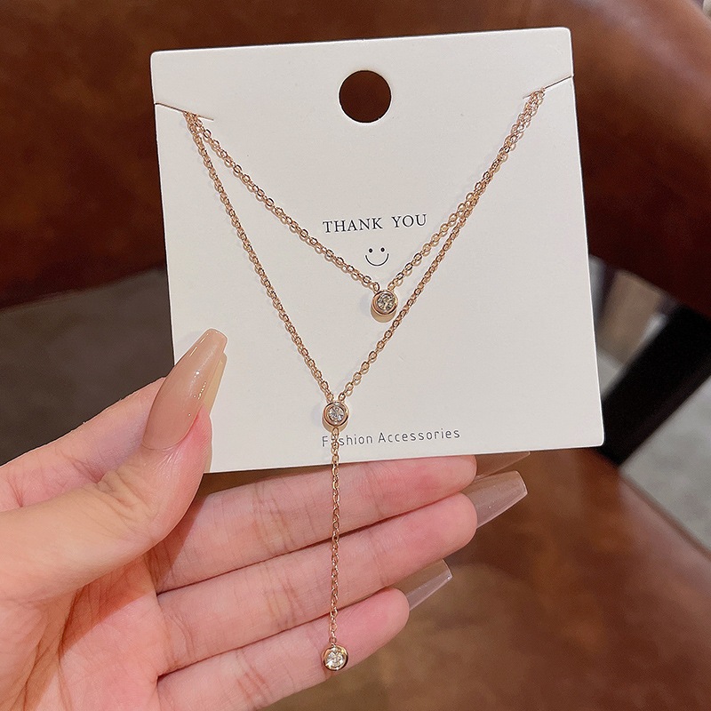 シンプル チタンスチール ネックレス 女性 精巧 留め ジルコニア 超キラ 二重 ペンダント チョーカー