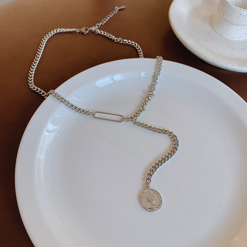チタンスチール クリップ 円形 プレート ネックレス 女性 安全ピン インスタ映え クール系 女性 タートルネックセーター用 ペンダント
