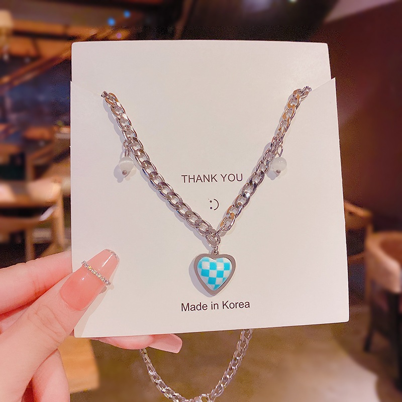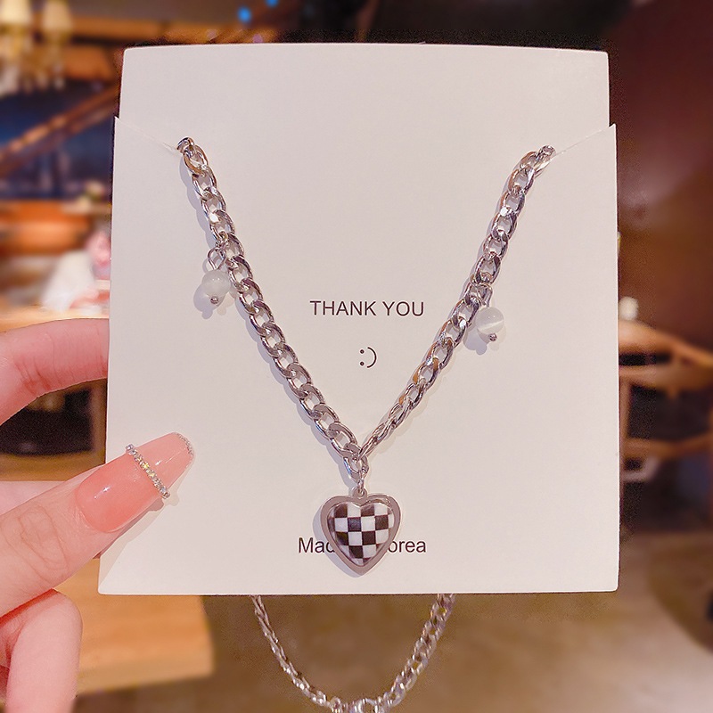 インスタ映え デザイン性 チェス盤 ハート 黒白 格子 チタンスチール ネックレス 女性 ヒップホップ風 タートルネックセーター用