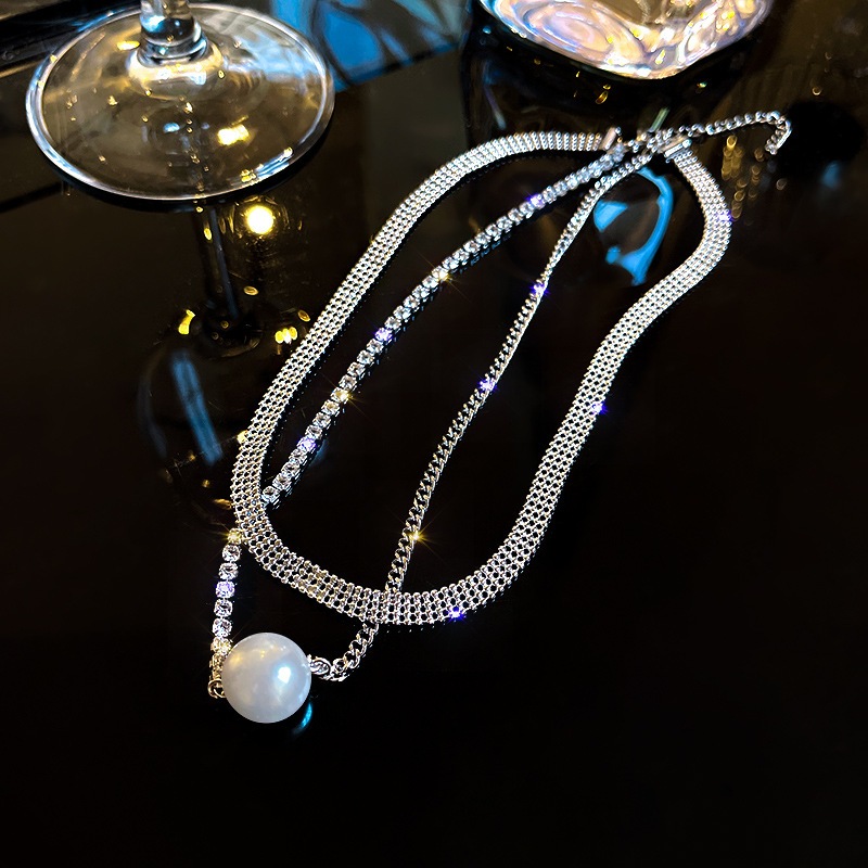 チタンスチール 二重 パール ネックレス デザイン性 チョーカー 女性 シンプル スタイリッシュ ペンダント アクセサリー