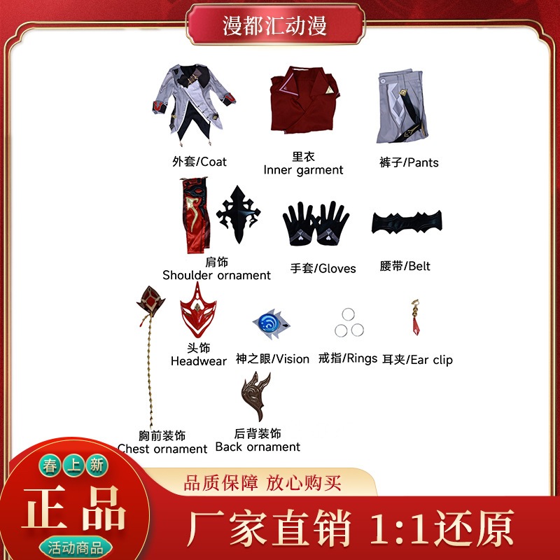 W 元神cos服達達利亜コスプレ服装愚人衆経営責任者マントアニメc服メンズ