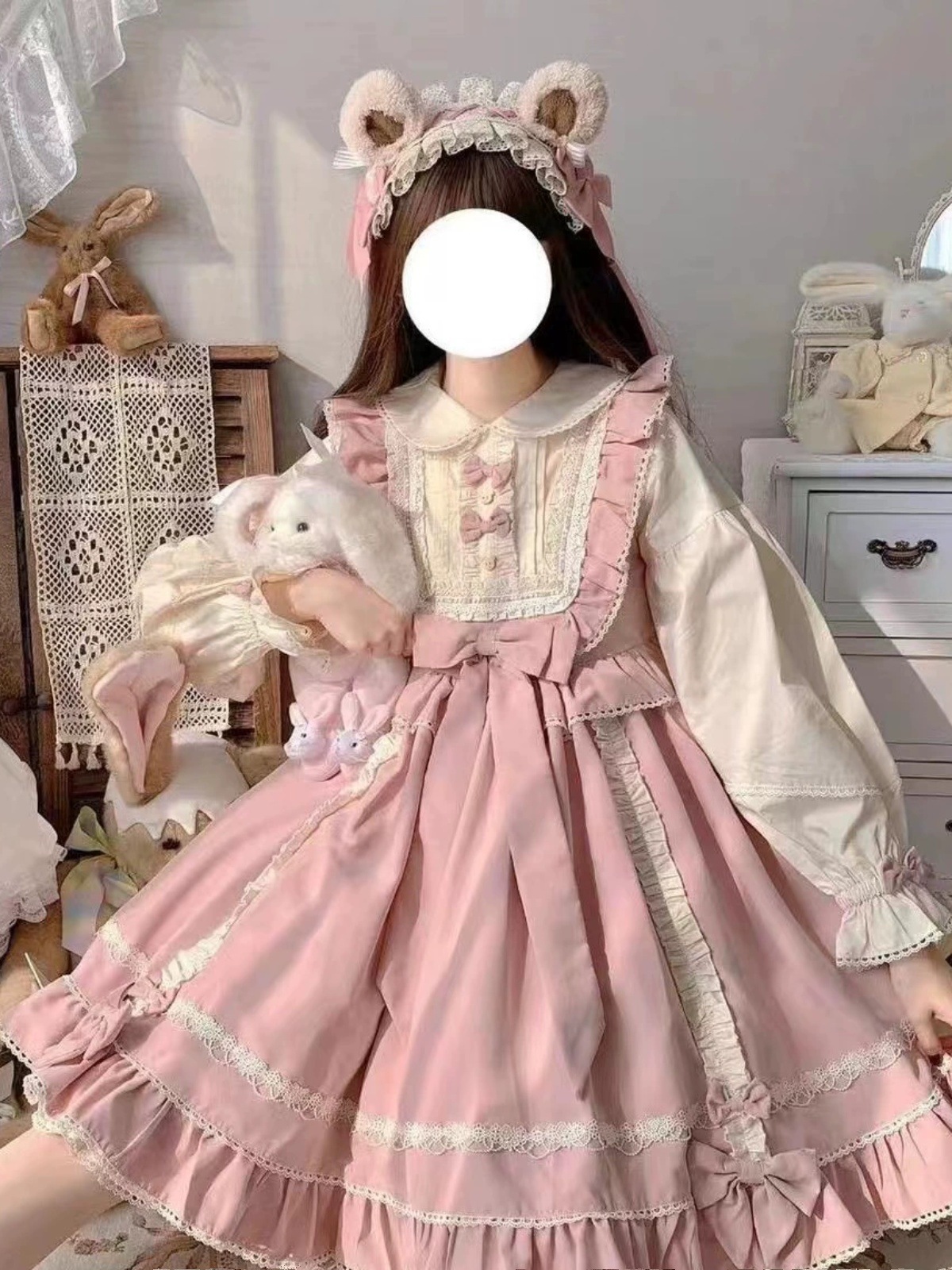 夏正規品lolitaスカート大きい子供甘くてかわいい洋服ロリータ色合わせ偽2つセットピンク王女スカート