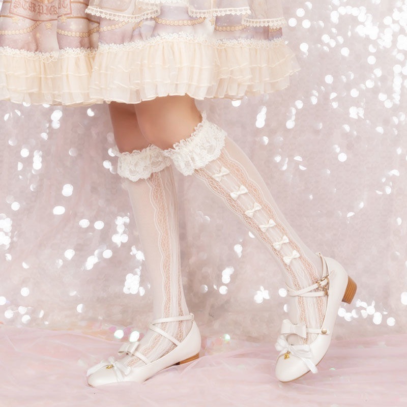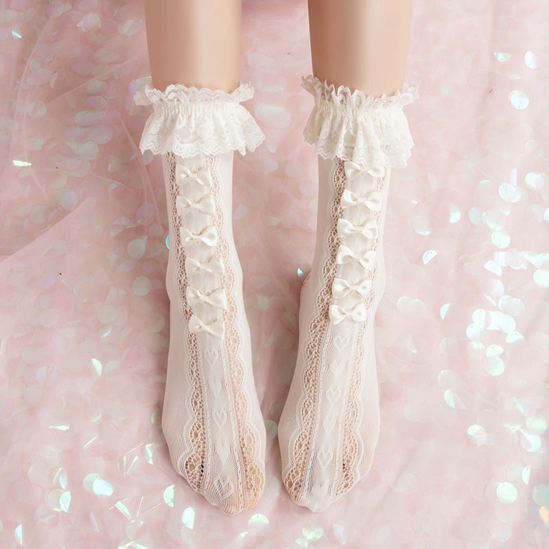 Lolita蝶結びレースロリータ靴下女性筒が膝を越えてかわいい春夏薄いタイプ