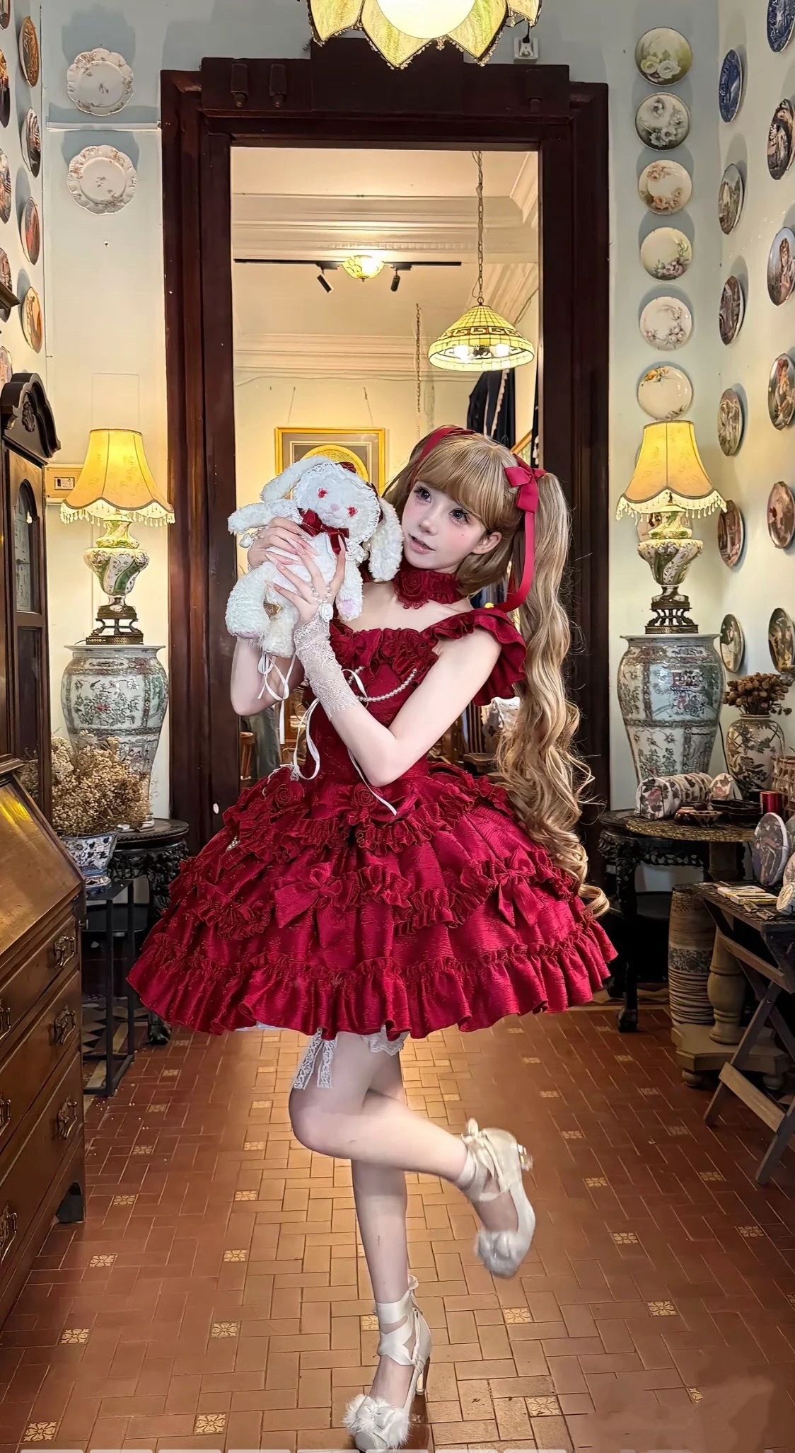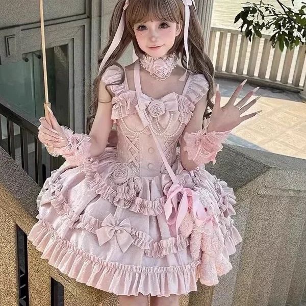ロリータ正規品カスタム重工サスペンダースカートlolitaピンクワンピース女子jskバレエスカート