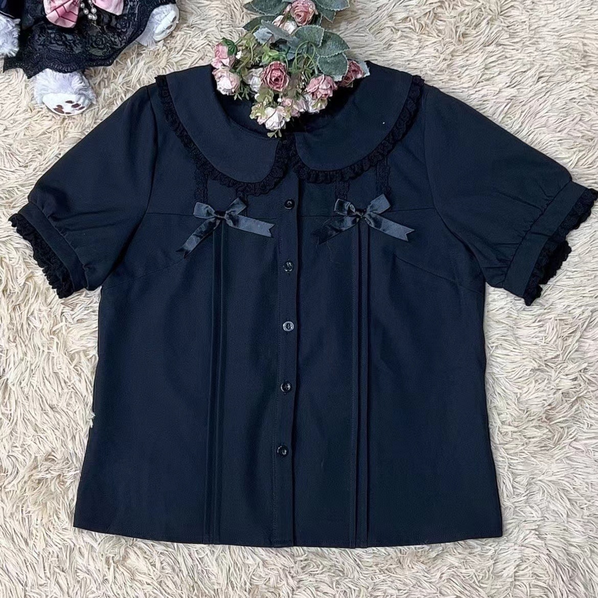 Lolita洋服2025夏半袖中に子供襟甘い純色jkシャツかわいい女子シャツを掛けます