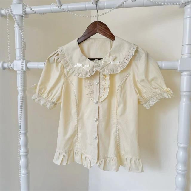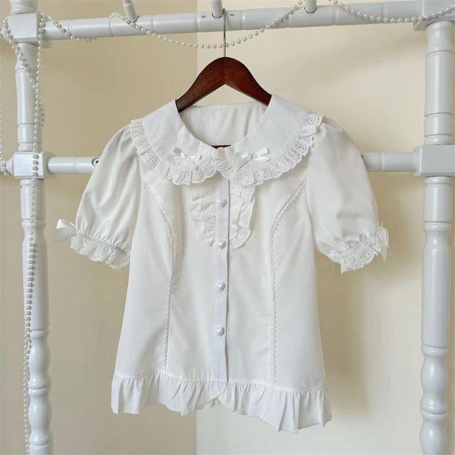 Lolita夏新型純綿中にロリータ可愛い子供襟上着jskは純色半袖を合わせます