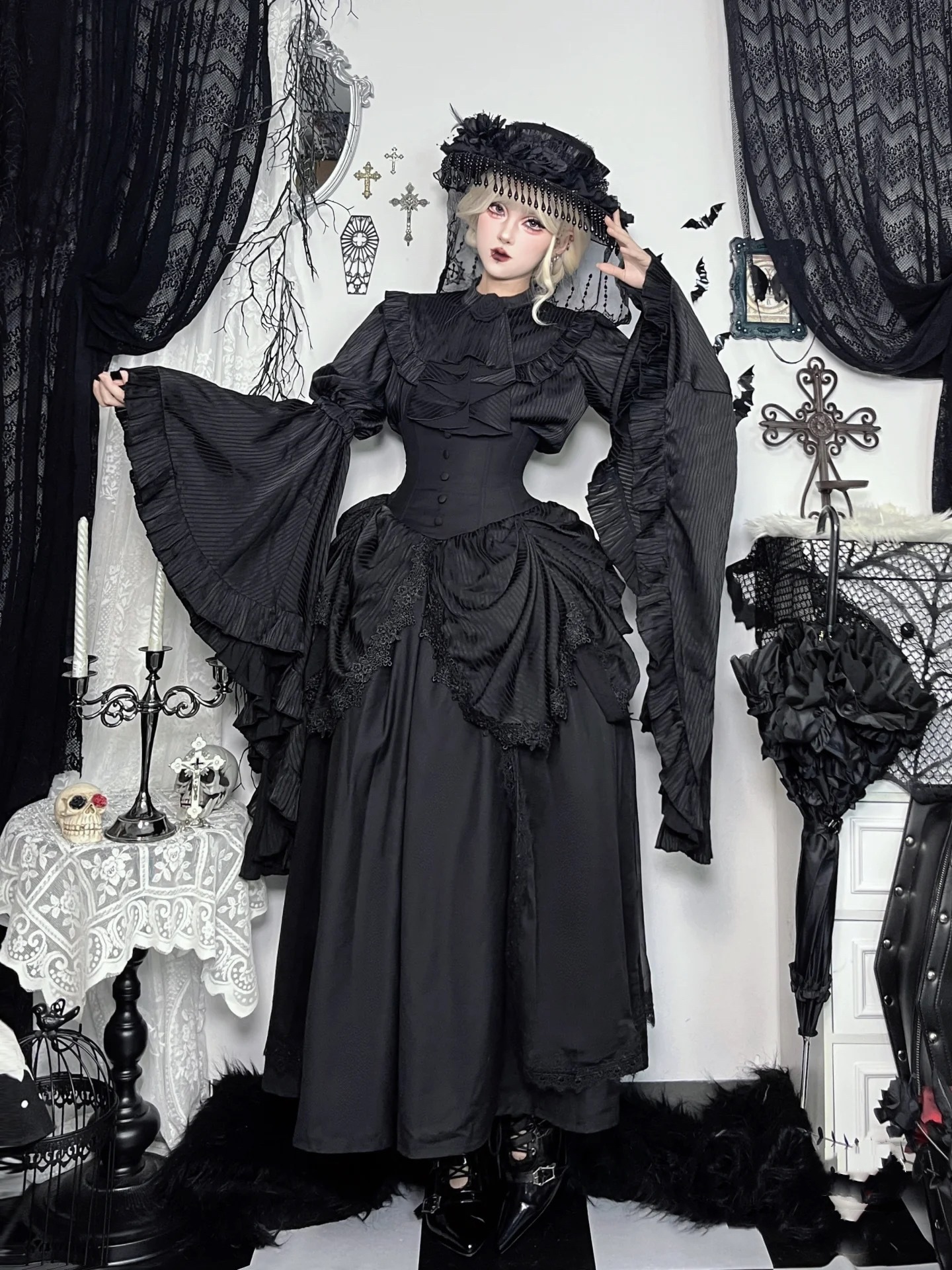 Lolita秋冬姫袖2点セットワンピースロリータ暗黒cosハロウィーンロング丈ウエストスカート