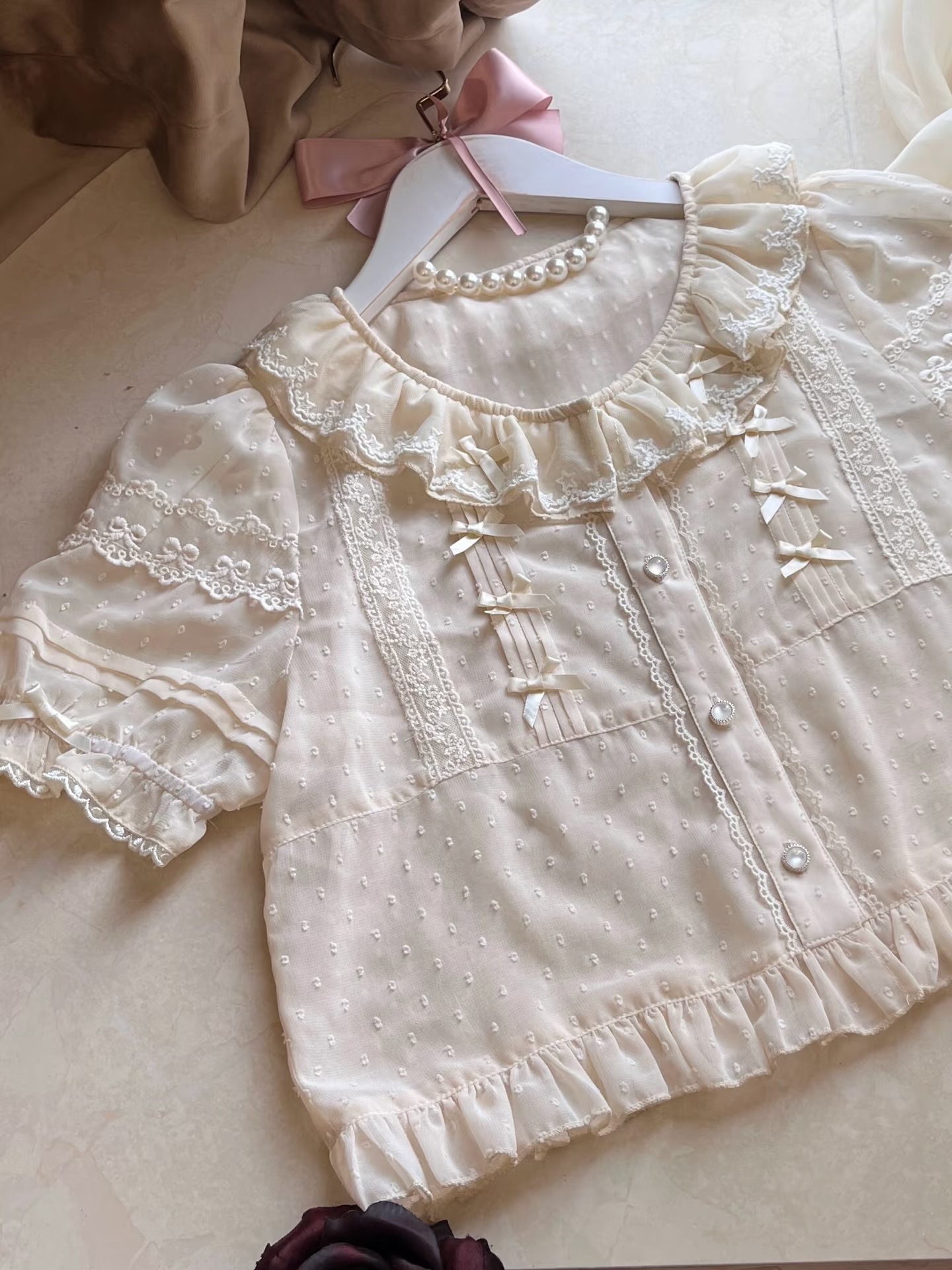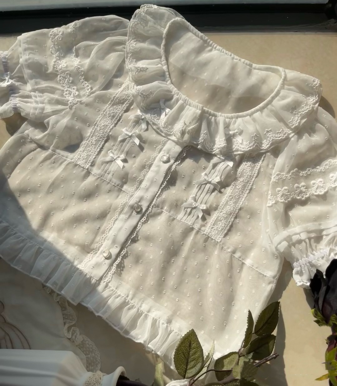 Lolita夏自作円舞曲レースシフォン丸襟中にロリータ泡袖を合わせて純色上着を合わせます