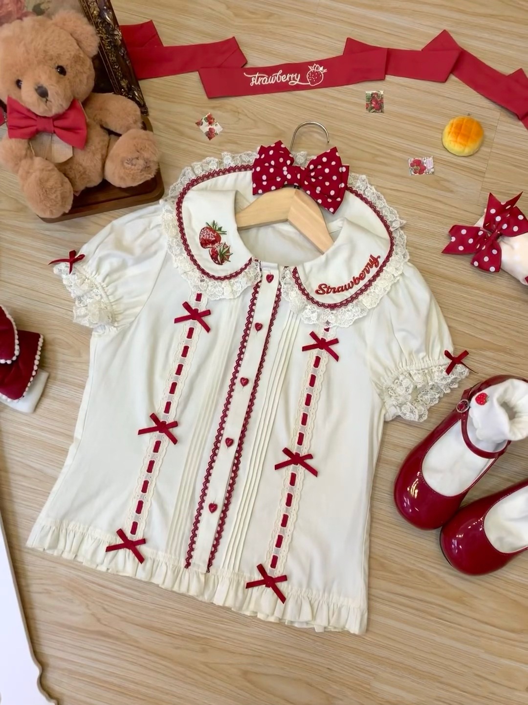 Lolita夏型自作インナーロリータ人形襟かわいい刺繍いちご半袖jskレギンス