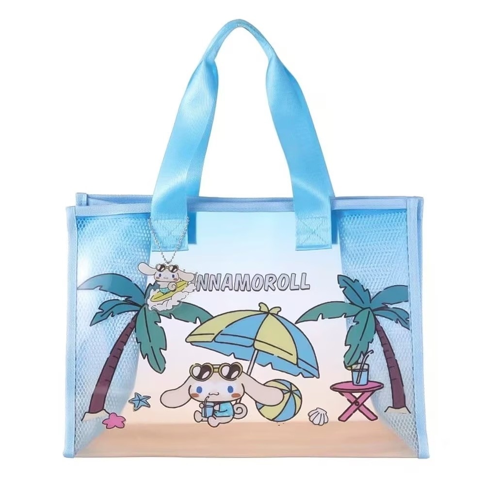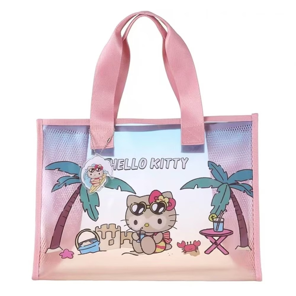 MINISO 名創優品 正規品保証 サンリオ 夏用 ブラックレザー ビーチバッグ 大容量 ゼリー 透明メッシュ ハンドバッグ