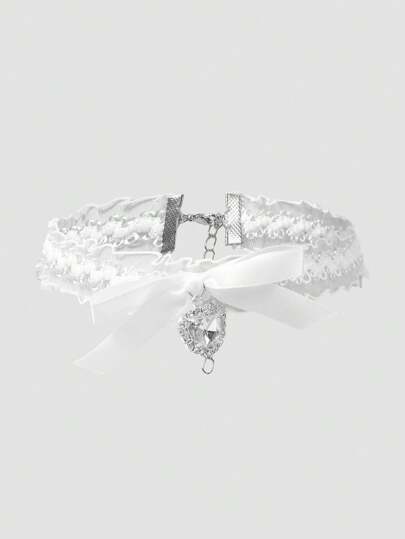 ミニマリストレース ハート クリスタル装飾 チョーカーネックレス
