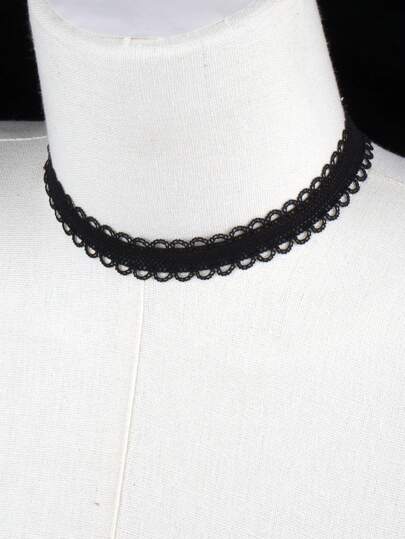 1個 レディース ストレッチ ダブルエッジ三日月レース ダブルサイド 歯飾り ネックレス伸縮性レースチョーカー ネックレス30cm+5cm 延長