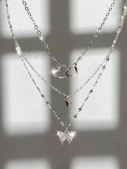 2個セット バタフライハート 重ね付けネックレス多層鎖骨チェーン欧米スタイル バレンタイン